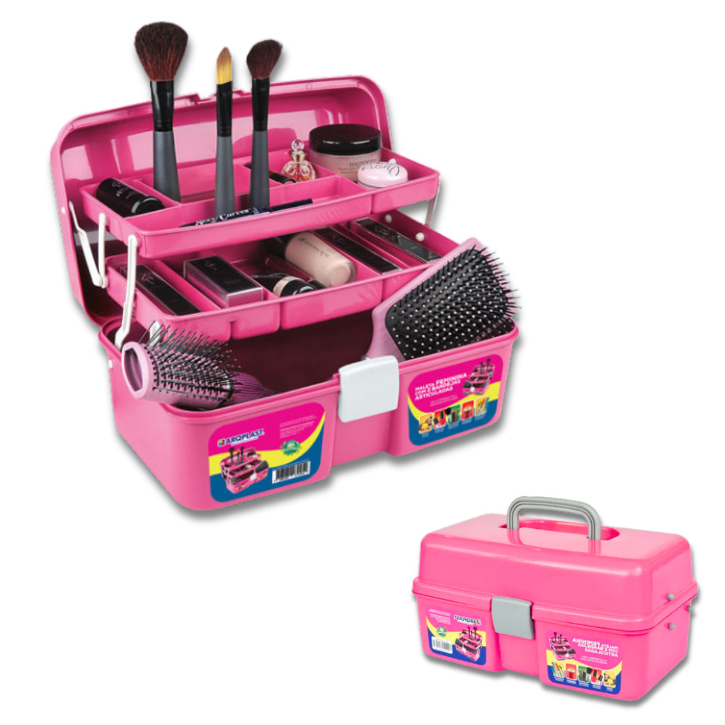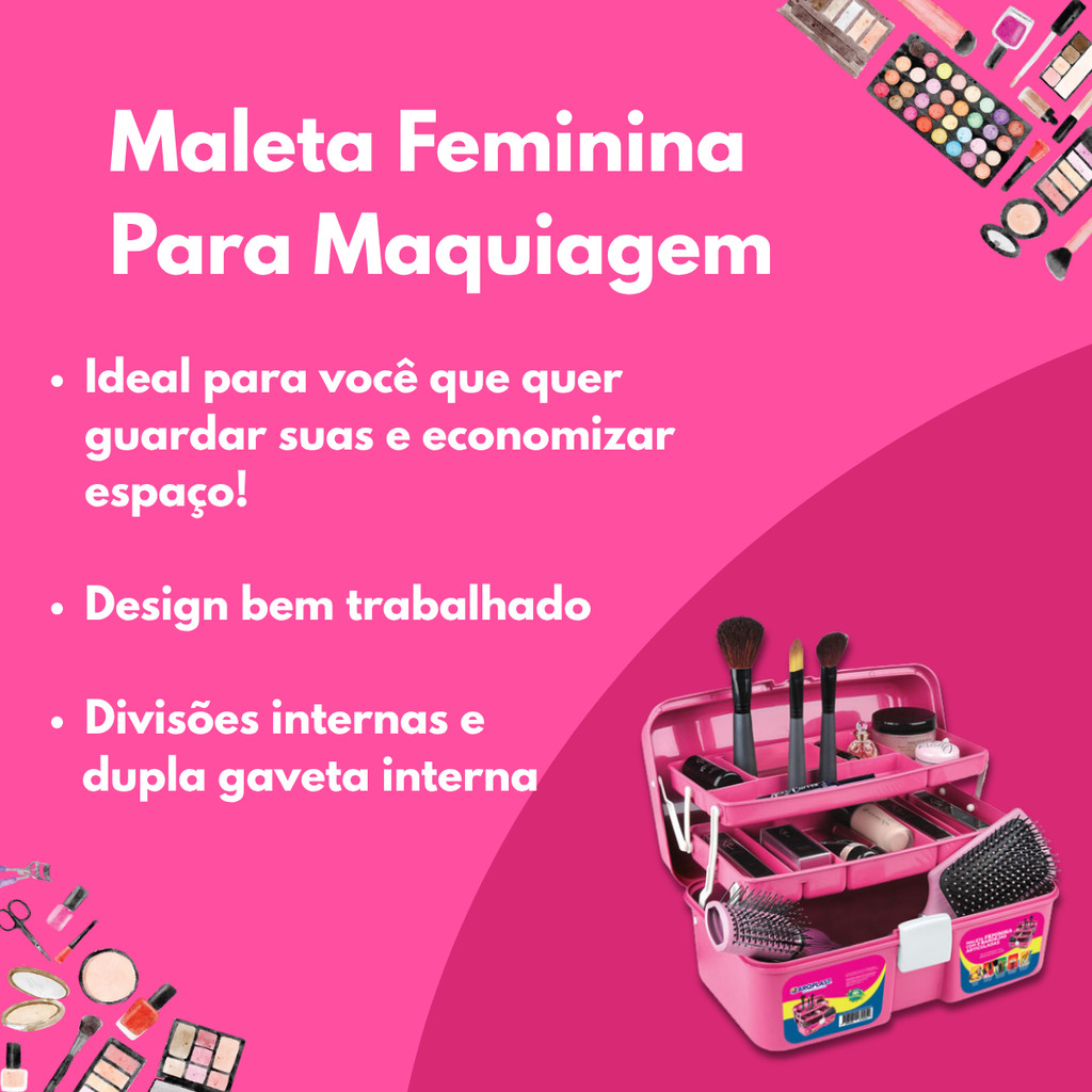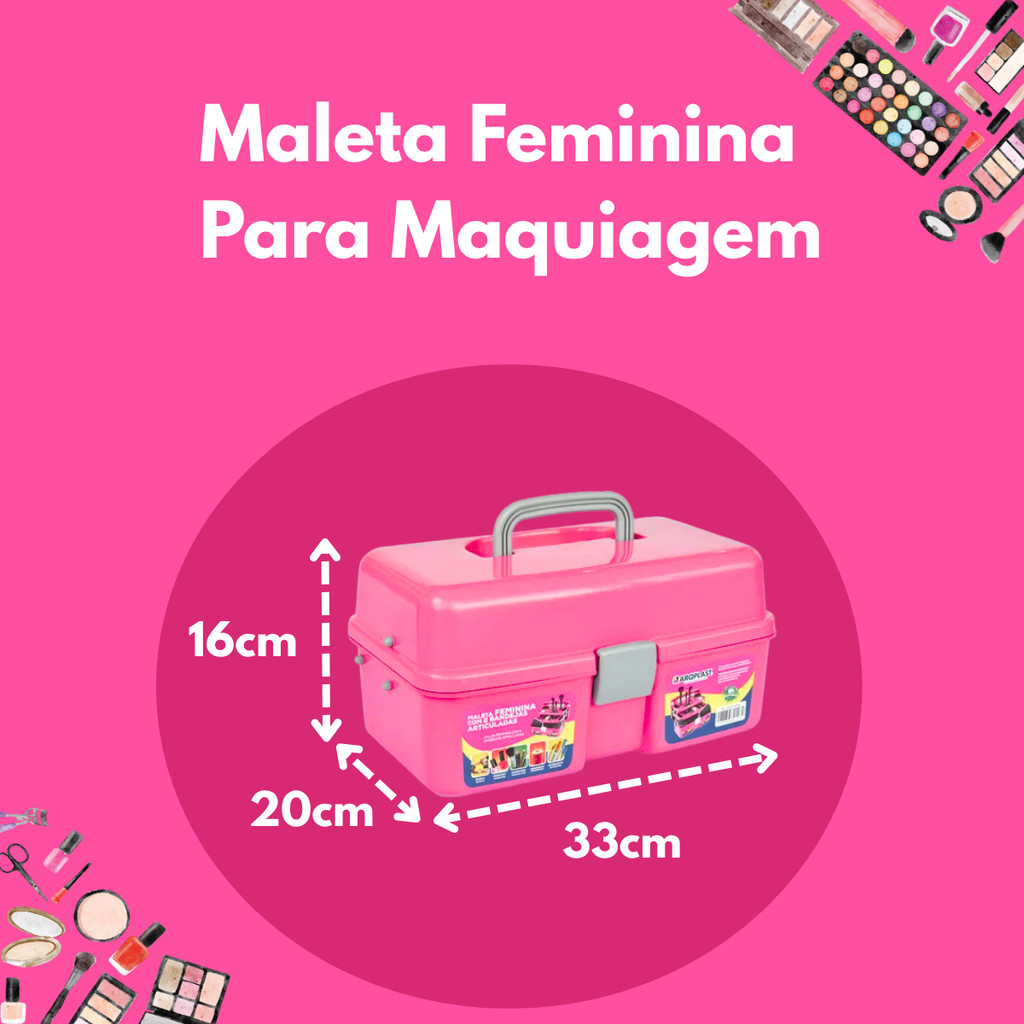 Maleta De Maquiagem Rosa Multiuso Caixa Feminina Com 2 Bandejas Retráteis Para Guardar Maquiagem