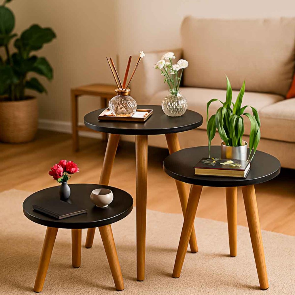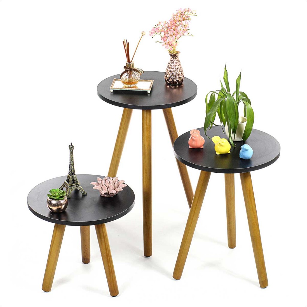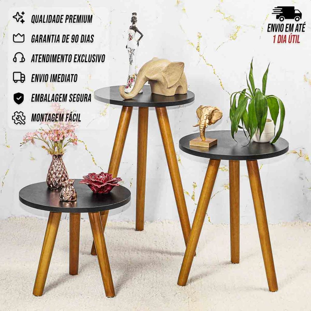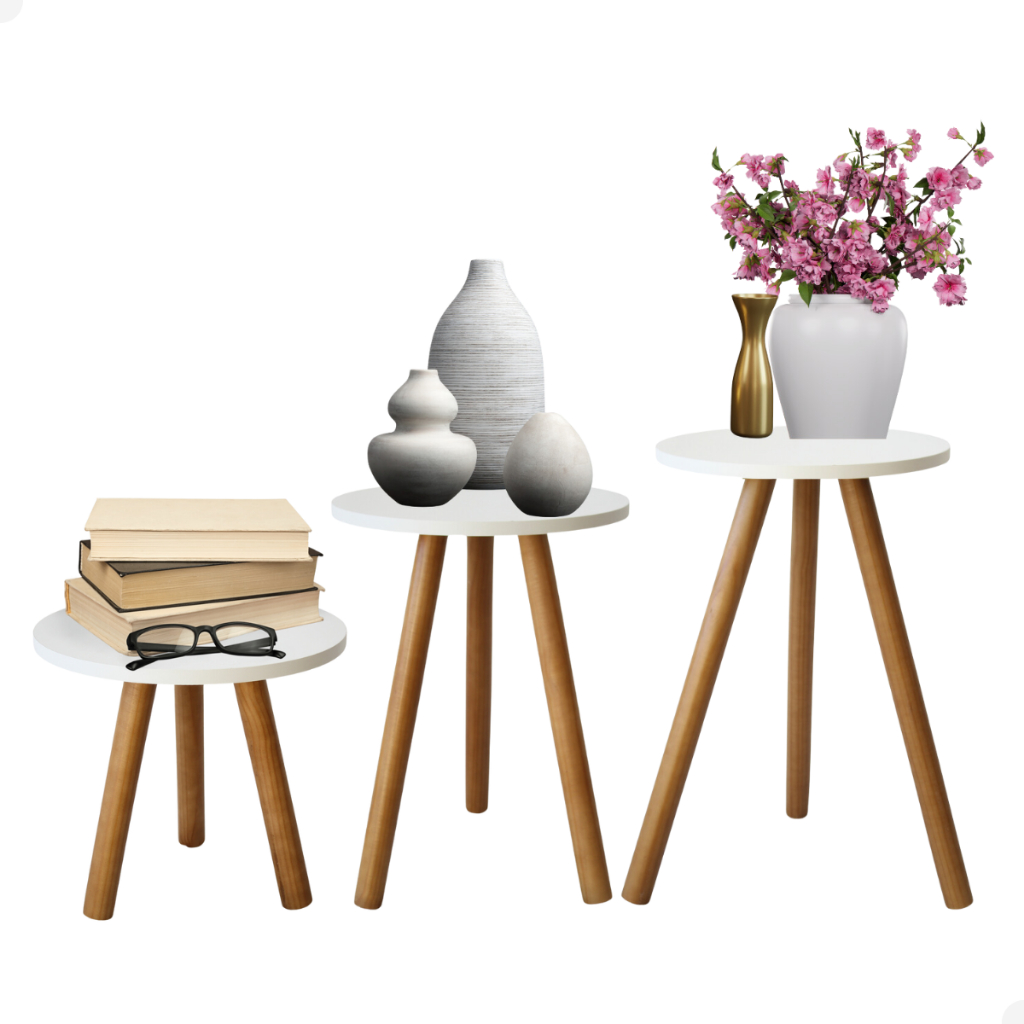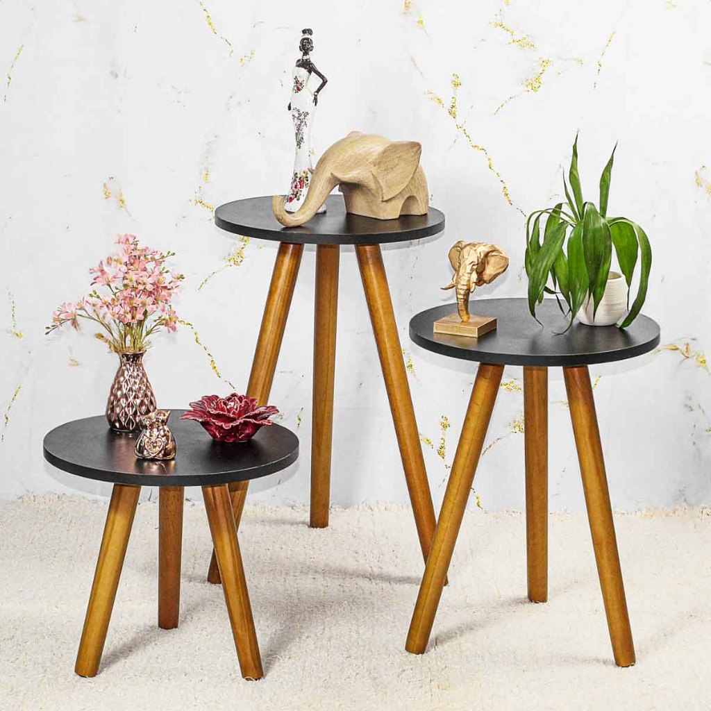 Trio Mesinhas Lateral Para Sala Retro Pé Palito Porta Objetos Decoração