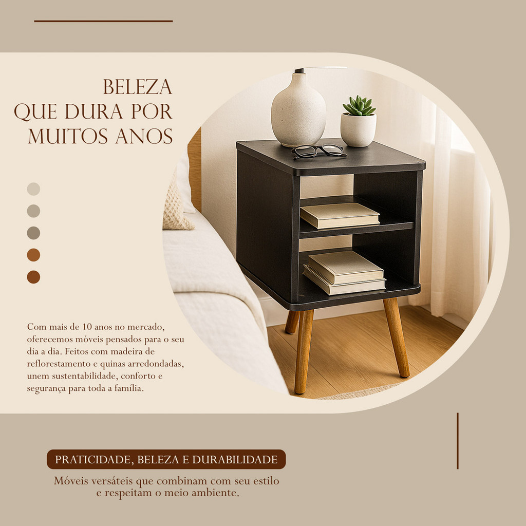 Mesa de Cabeceira Tripe Retro para Quarto Pé Palito