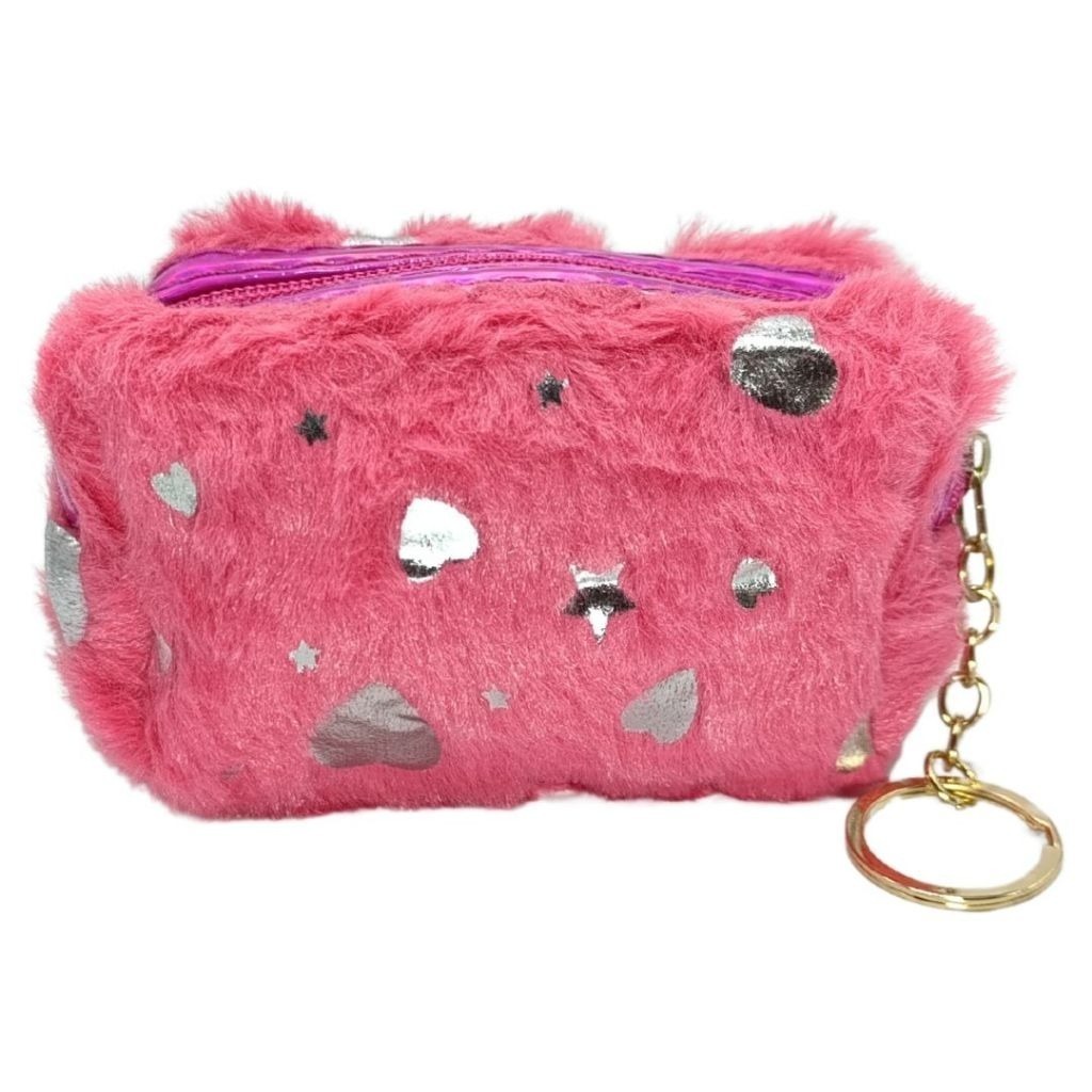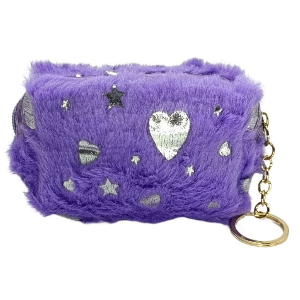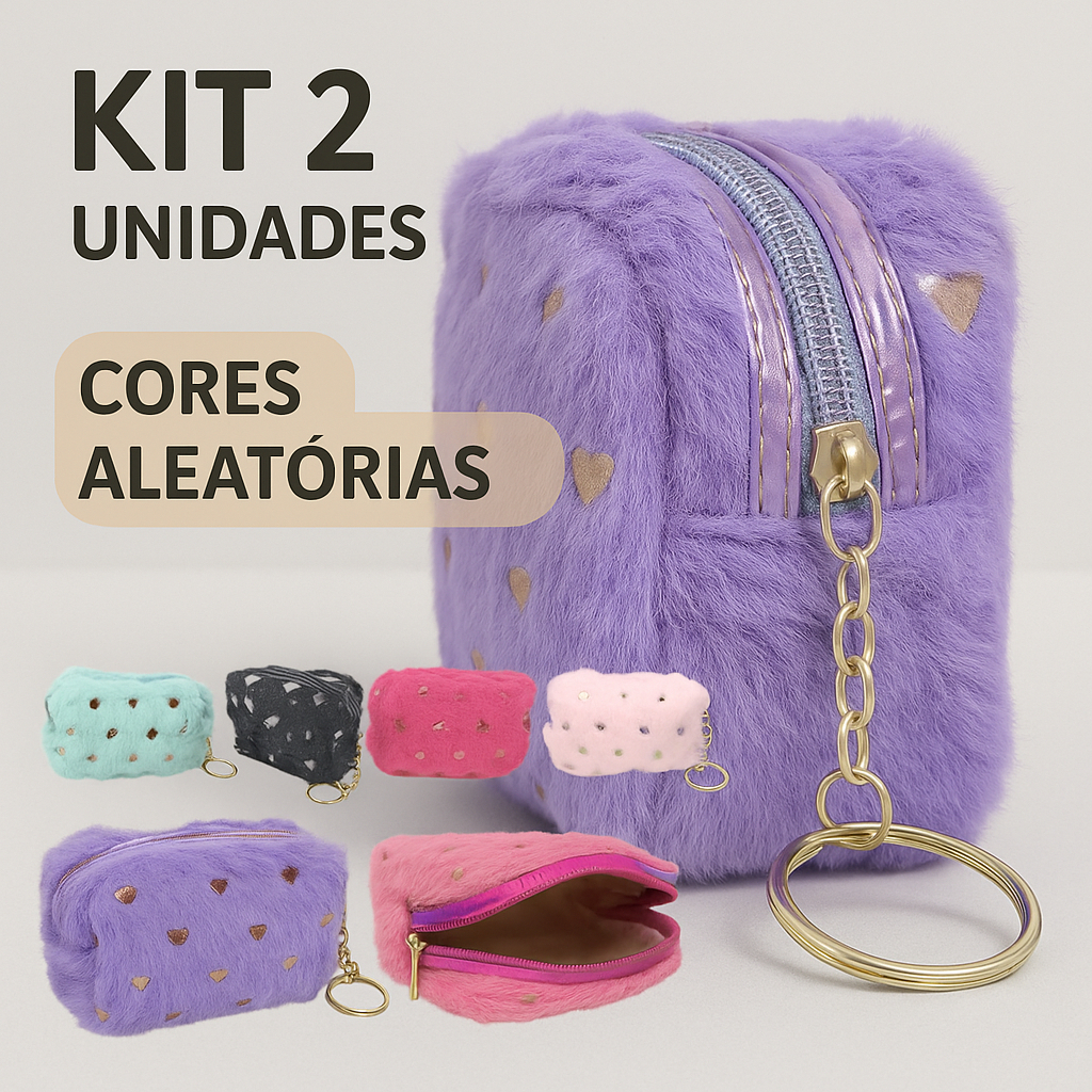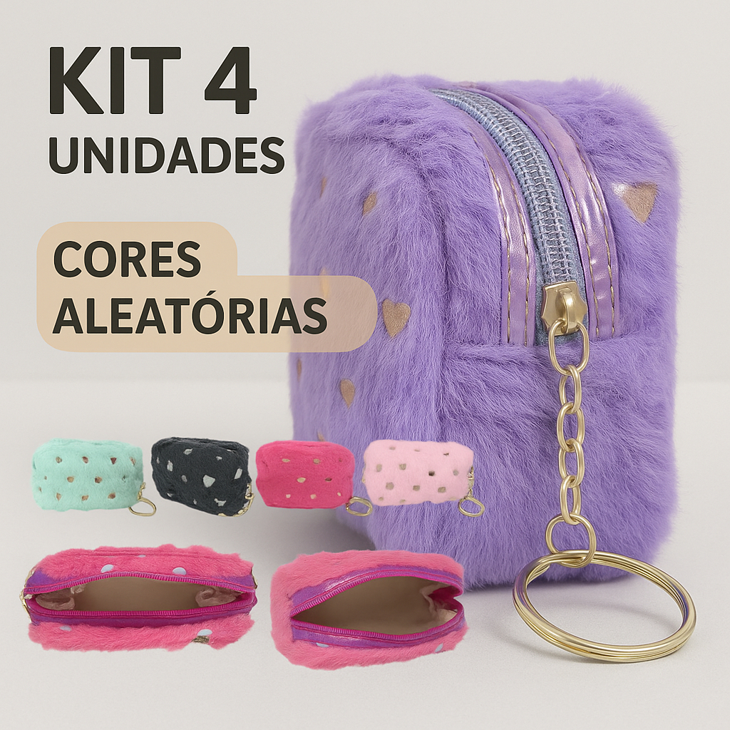 Kit 2/4 Necessaire de Pelucia c/ Zíper Chaveiro Porta Moedas Feminino
