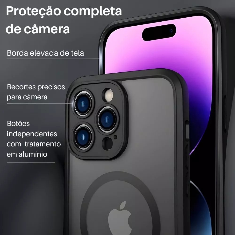 Capinha Case Fosca Premium COLOR + Proteção Câmera Magsafe Para iPhone 11 12 13 14 15 16 PRO PROMAX