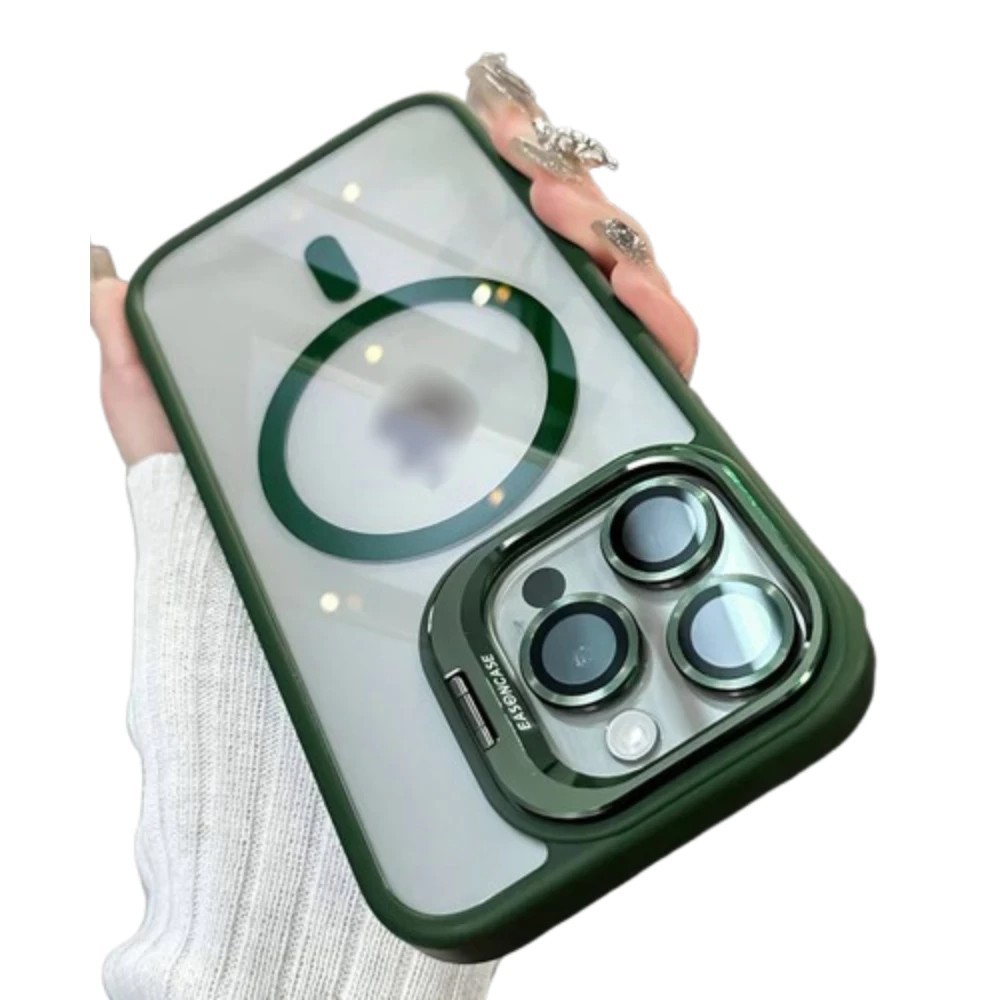 Capinha Premium Magsafe C/ Tampa Suporte Câmera e Kit Lente Proteção iPhone 11 12 13 14 15 16 ProMax