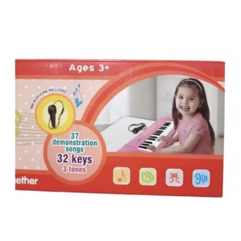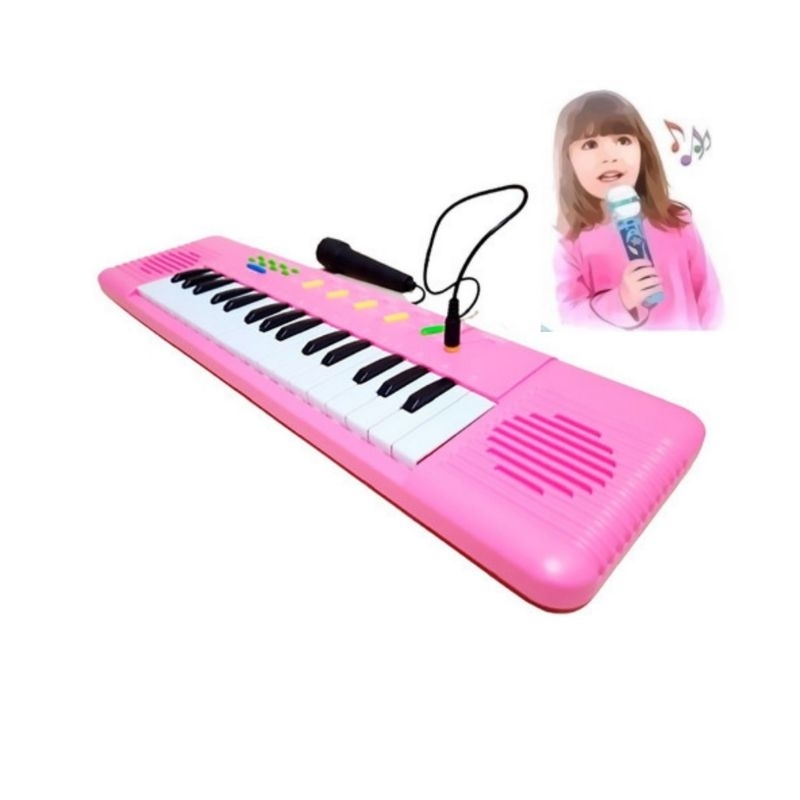 Brinquedo Teclado Infantil karaokê Piano Musical Microfone Rosa