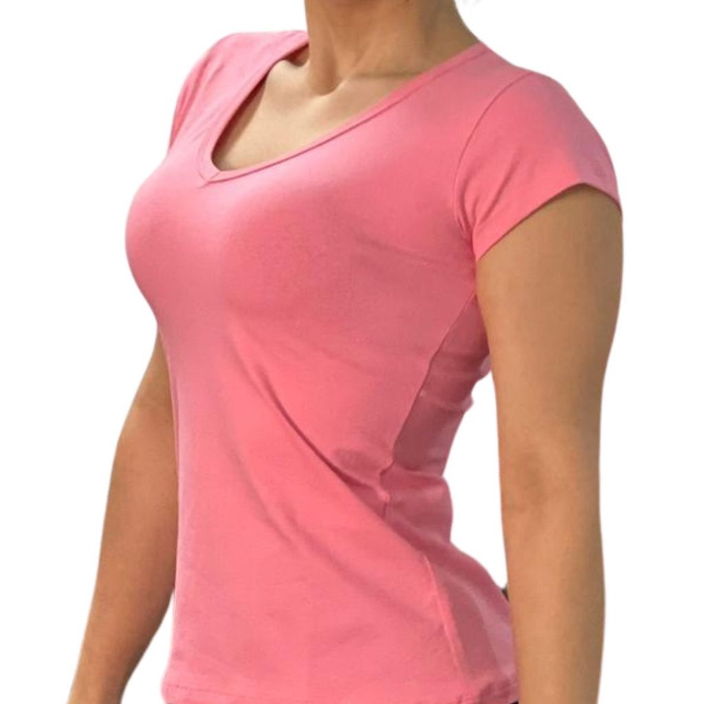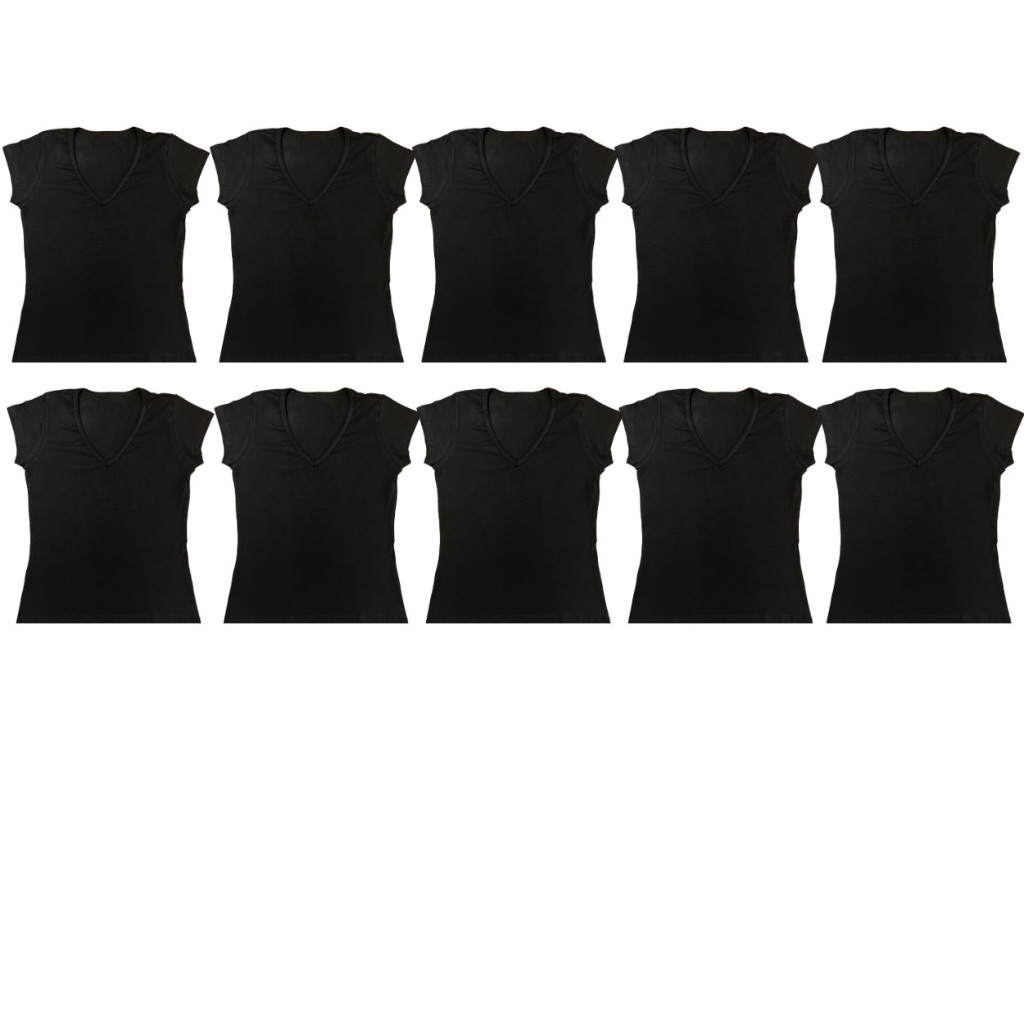 Kit 10 blusas feminina algodão com lycra decote v cores vivas, p ao gg, plus size g1,g2,g3
