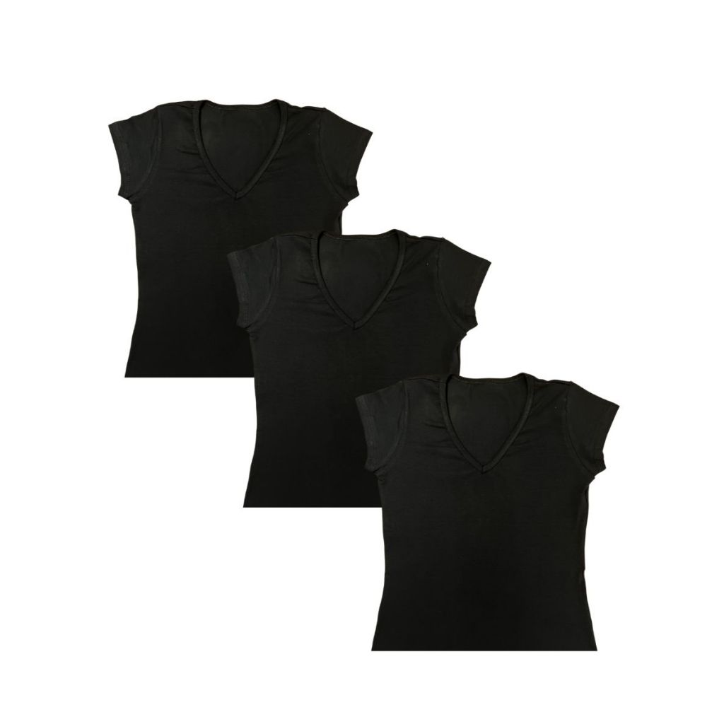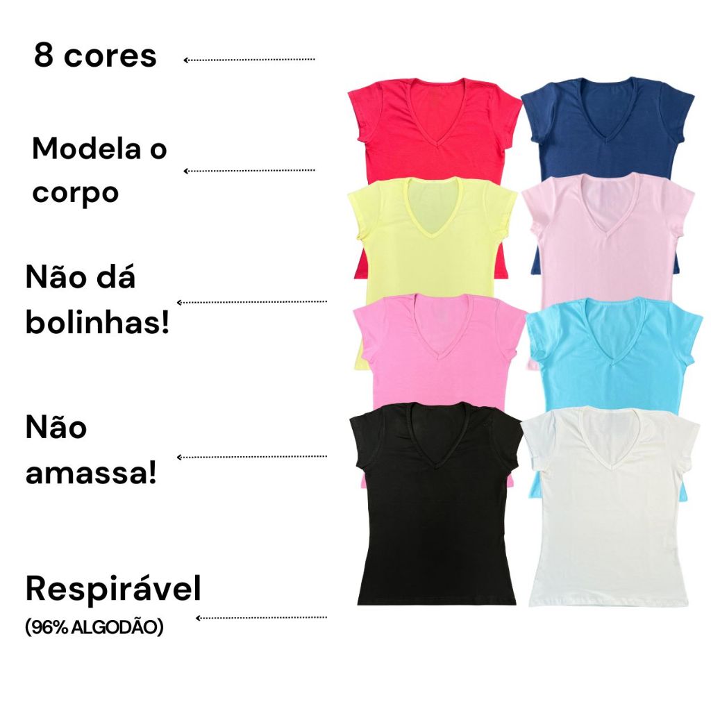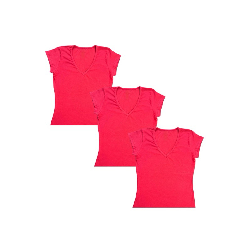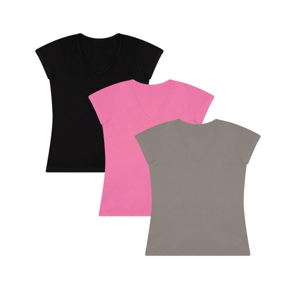 kit 3 blusa feminia plus size basica decote v manga curta, algodão, confortável, moda plus size