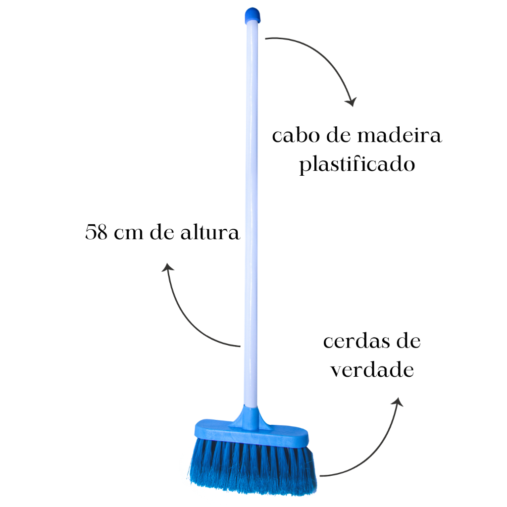 Jogo de Limpeza Infantil Rosa ou Azul Brinquedo Educativo Vassoura, Rodo, Pá Brincar de Casinha