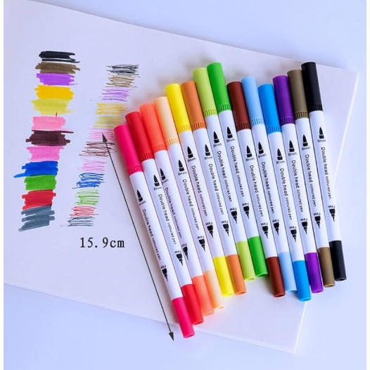 Kit 12/24/36/48 Cores Caneta 2 em 1 Brush Lettering e Ponta Fina Dual Pen Canetinha Colorir Desenho
