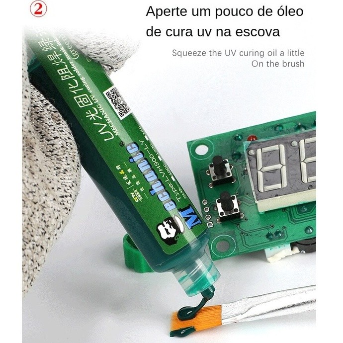 Máscara UV Verde Mechanic UVH900 10cc | Tinta UV para PCB em Seringa | Proteção de Trilhas e Reparos em Placas