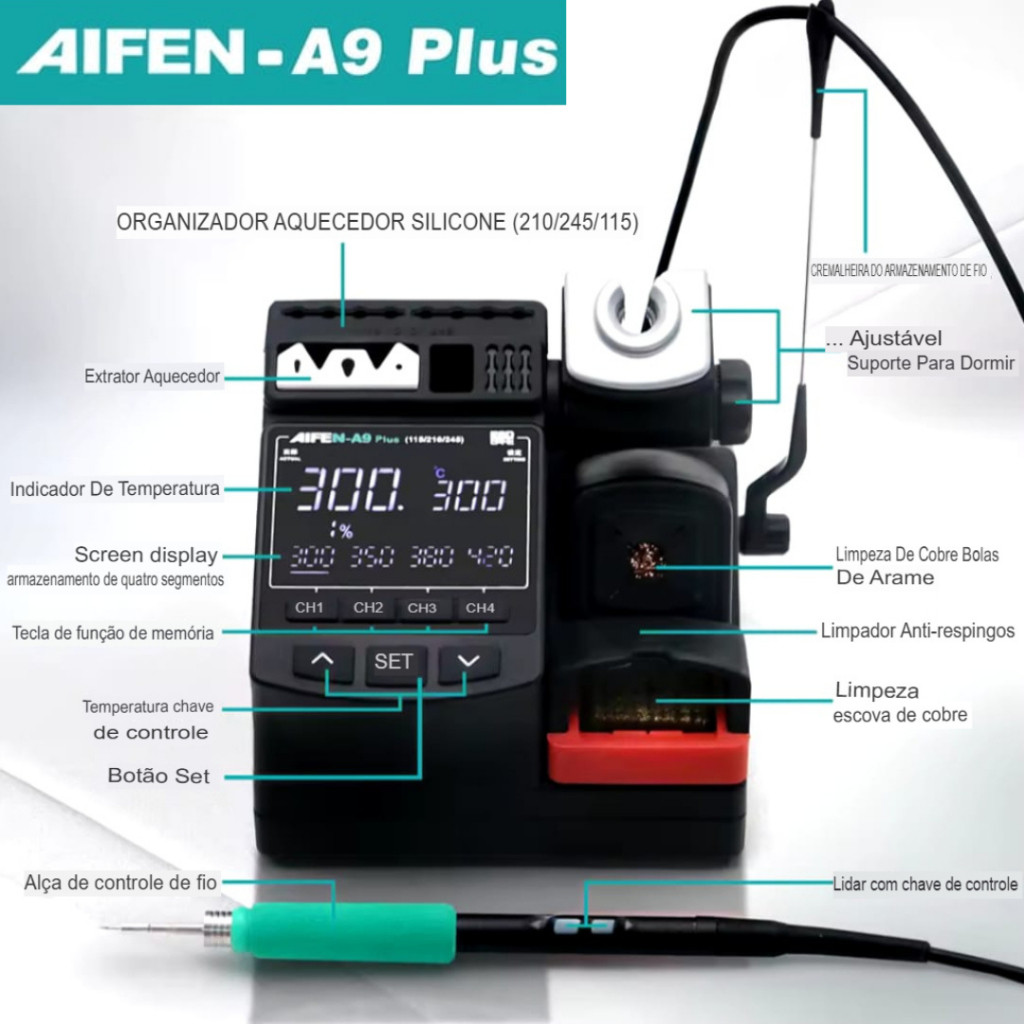 Estação de Solda Profissional Aifen A9 Plus 120W Bivolt com Pontas C210 Sugon para Manutenção Eletrônica