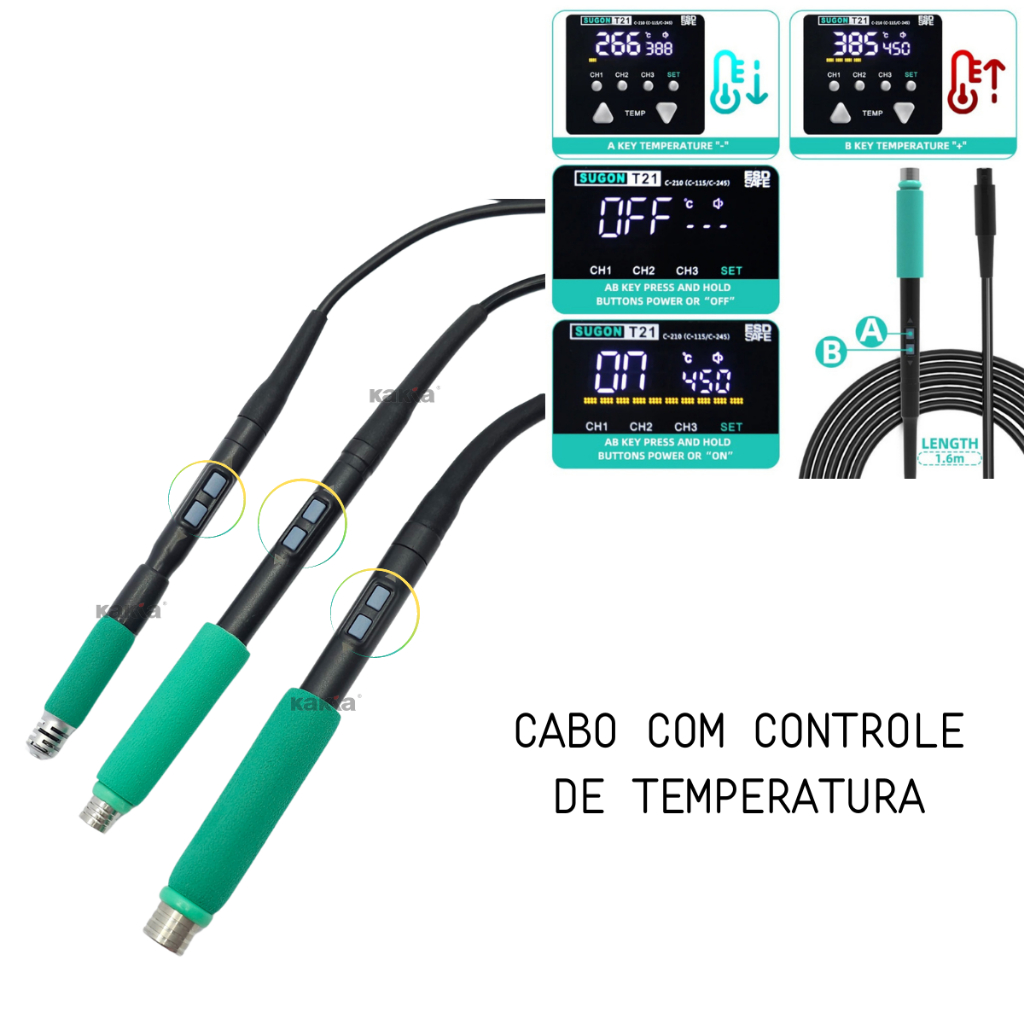 Cabo Punho Para Estação De Solda C210 C245 C115 Reposição Com Botão Controle Temperatura