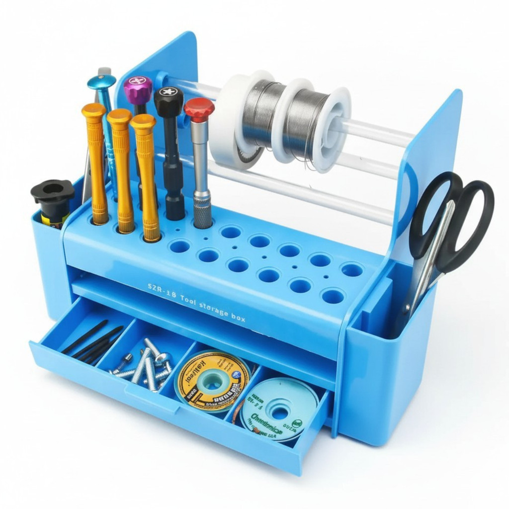 Organizador De Ferramentas Bancada Assistências De Celulares Azul