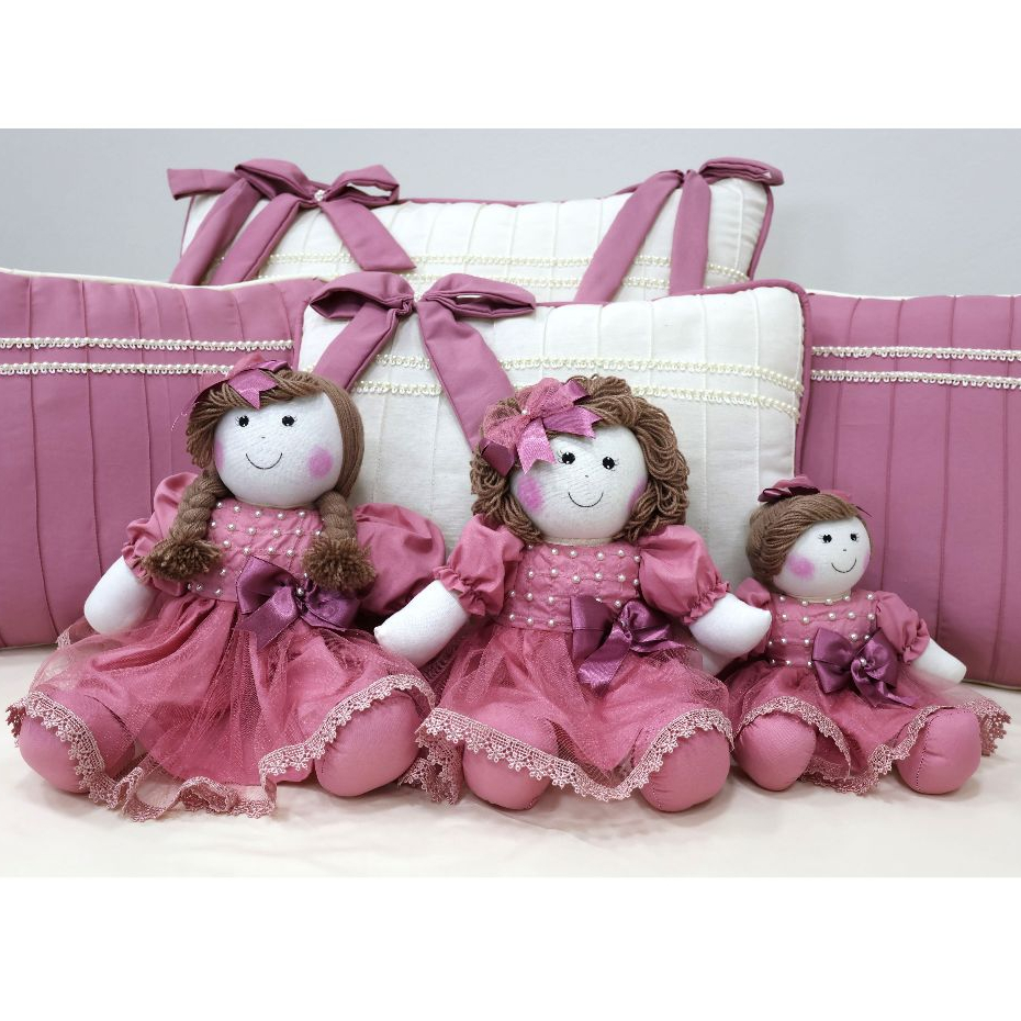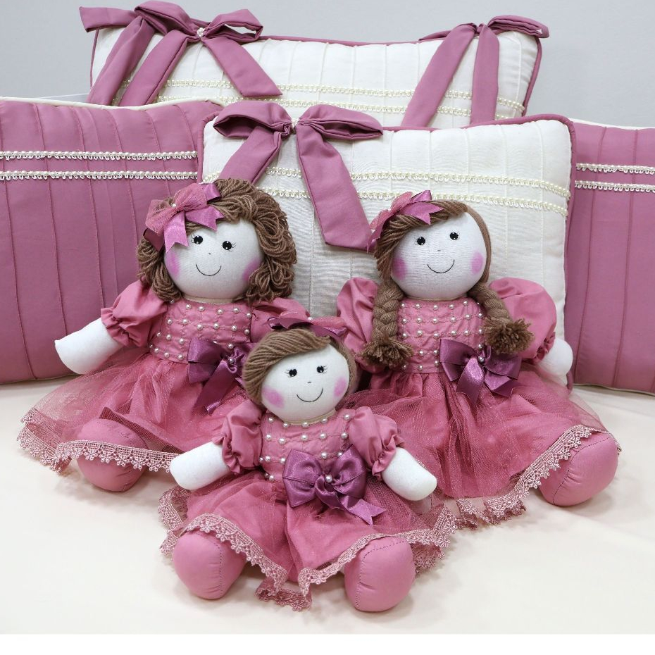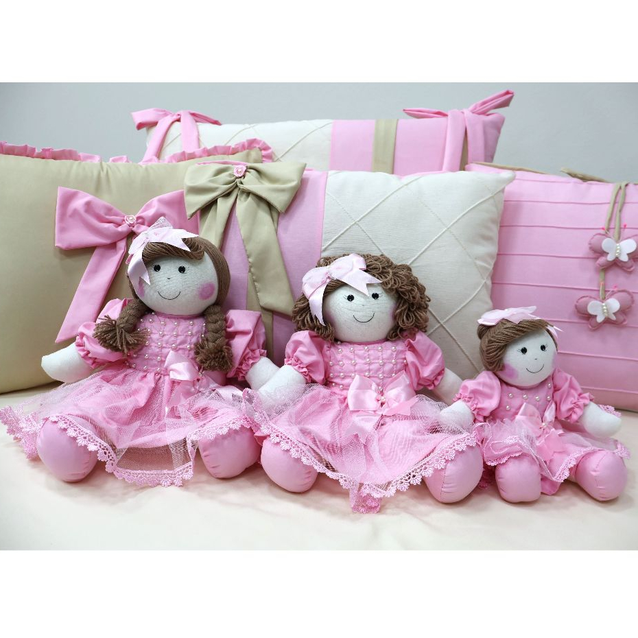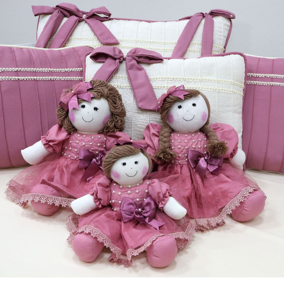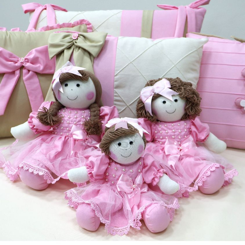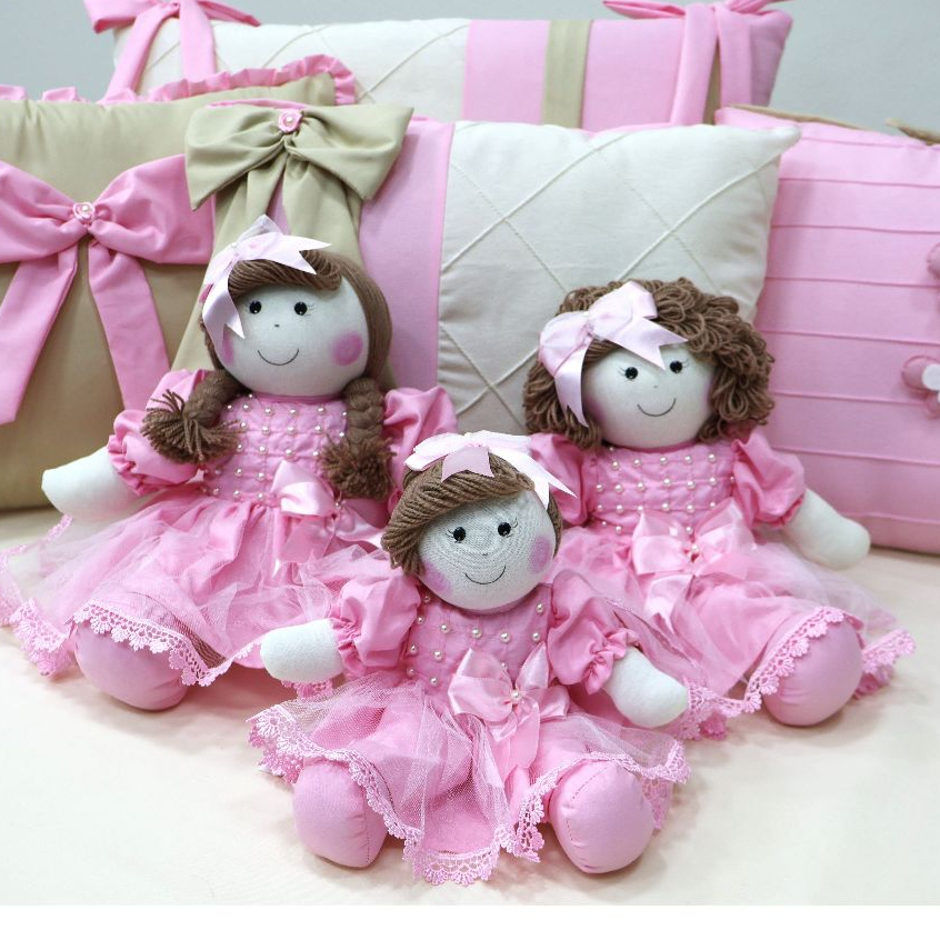 Kit Trio de Boneca De Pano Para Nicho Manu Pelúcia Decoração Quarto de Bebê