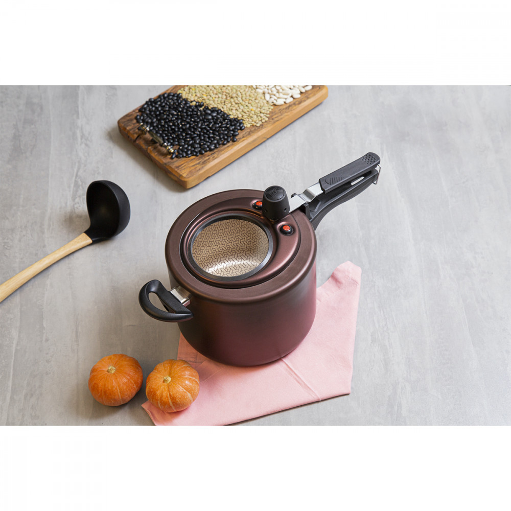 Panela de Pressão Antiaderente 4,5L Com Visor Superior Chocolate MTA - 9195