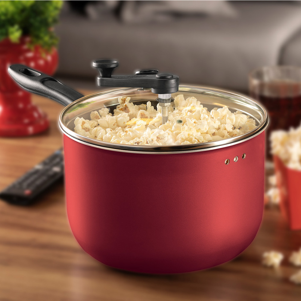 Pipoqueira Antiaderente Supra MTA 4,8L Com Tampa de Vidro Cereja