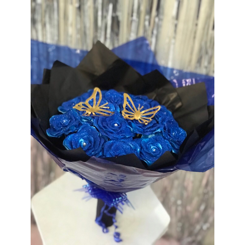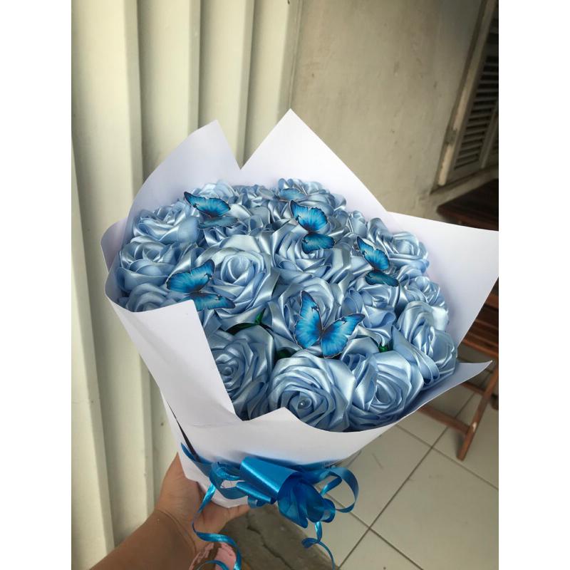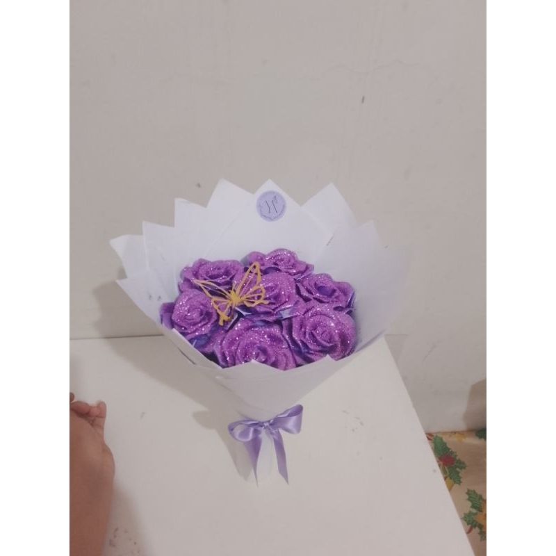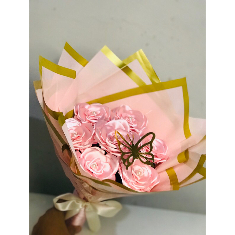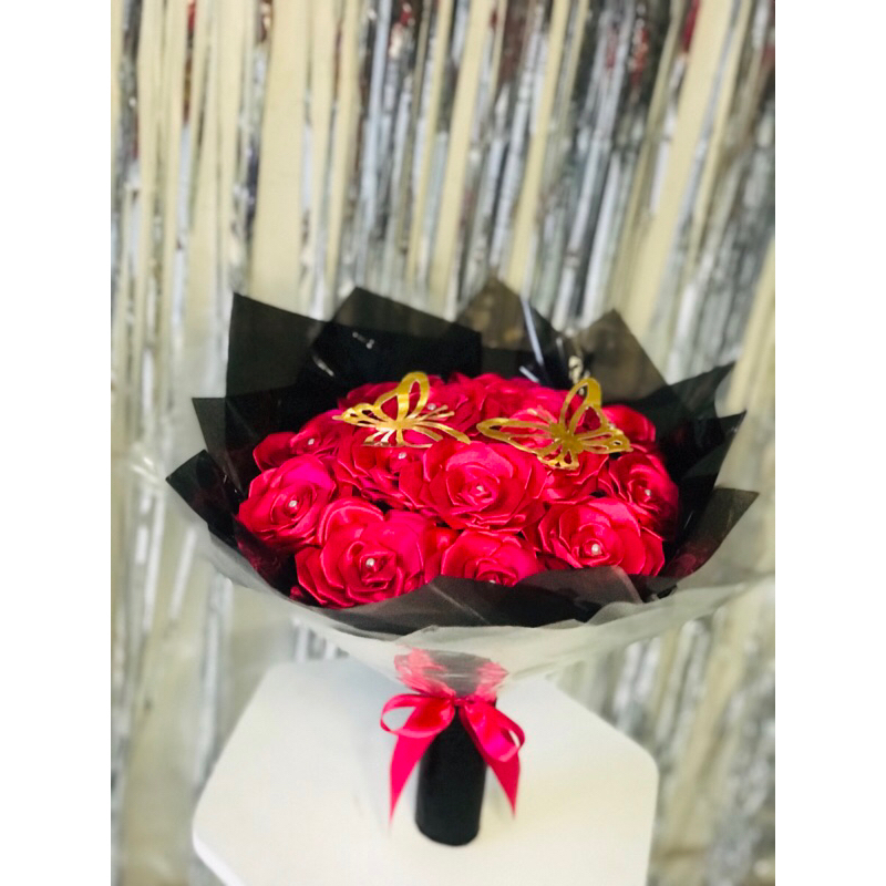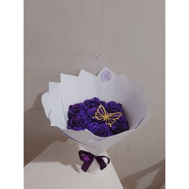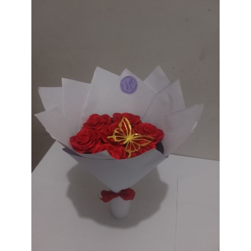 Buquê de flores com 7 rosas (montado)com borboleta metalizada.