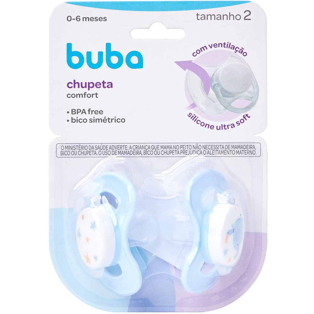 Kit 2 Chupetas Silicone Confort Ultra Soft +6 Meses Tamanho 2 Recém Nascido Bebe Bico Azul Buba