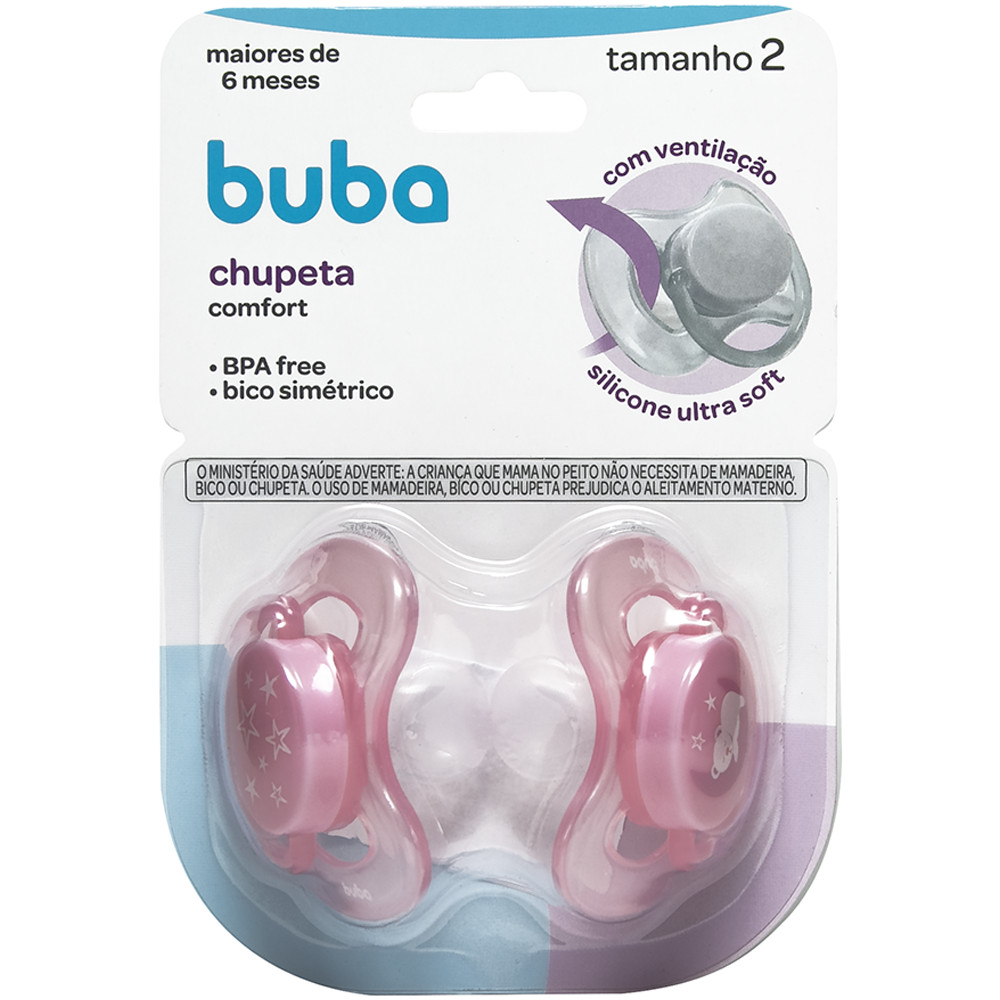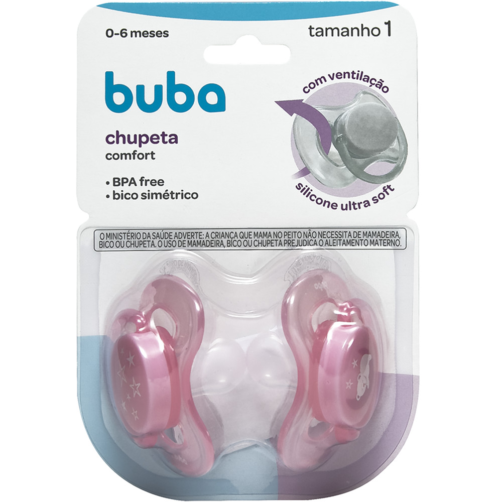 Kit 2 Chupetas Silicone Confort Ultra Soft 0-18 Meses Tamanho 1 e 2 Recém Nascido Bebe Rosa Buba