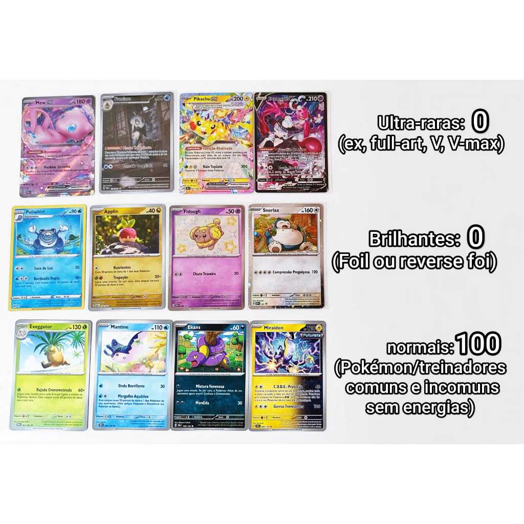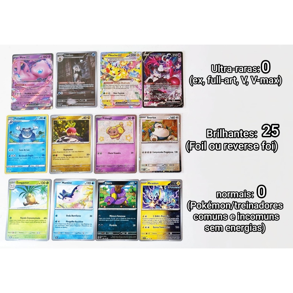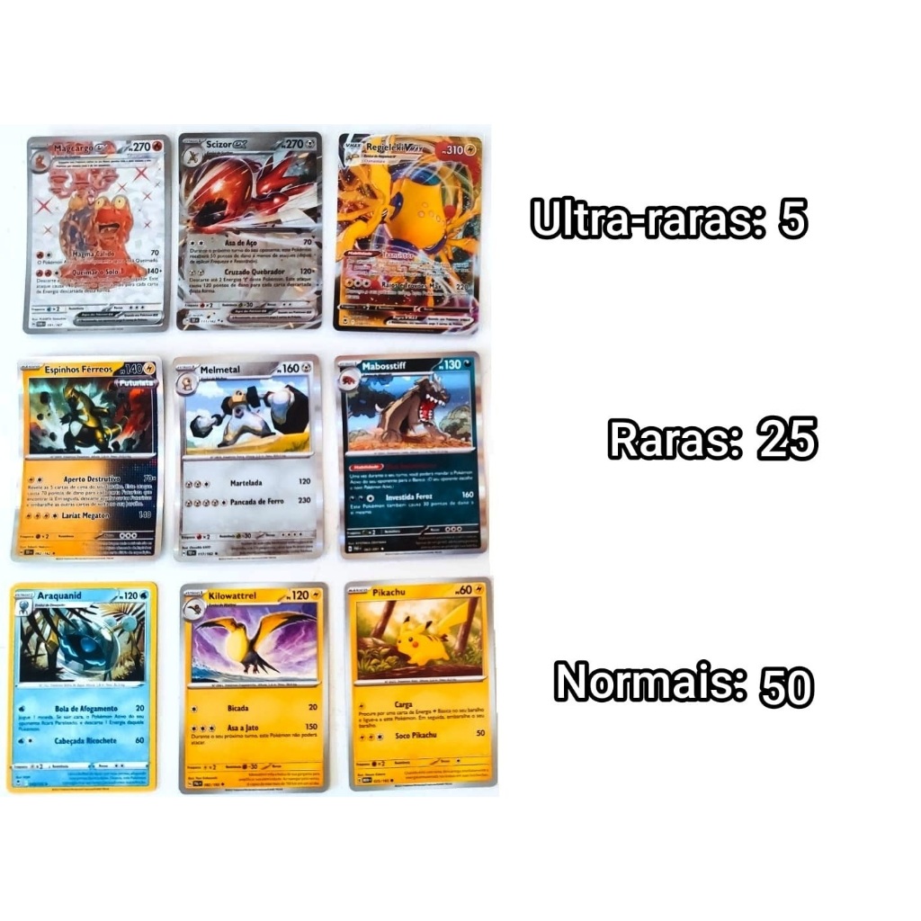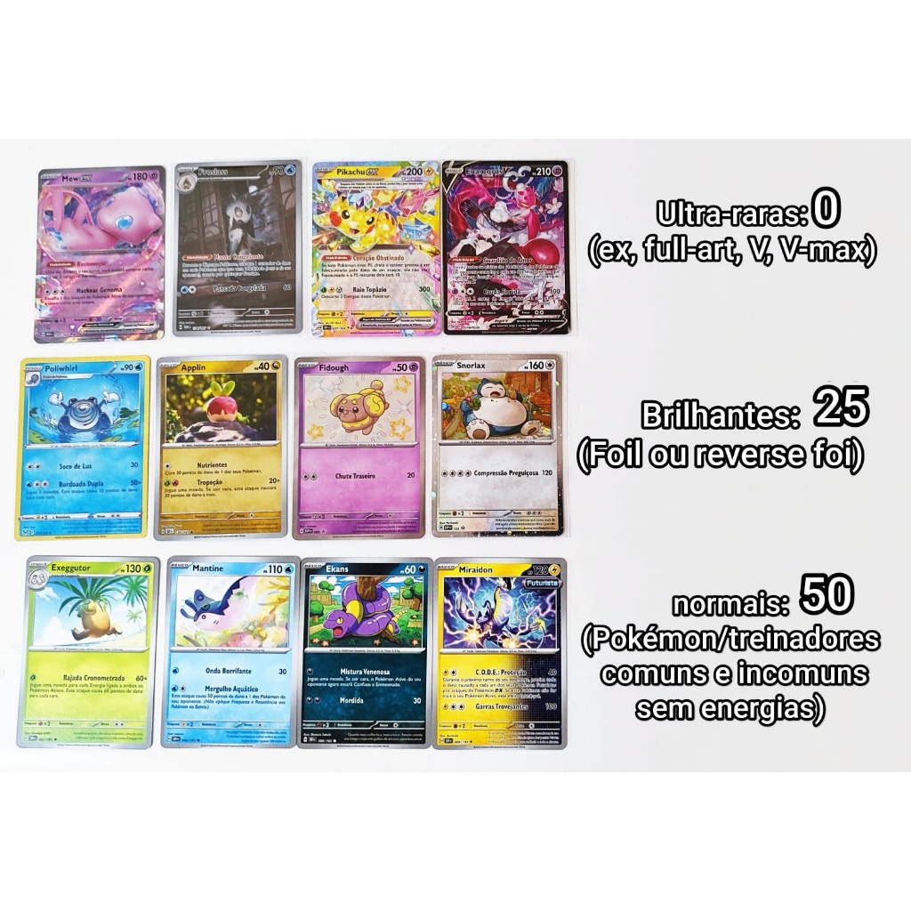 Kits com cartas pokémon ultra-raras, raras, brilhantes e comuns. 100% Originais em português. Complete seu deck.