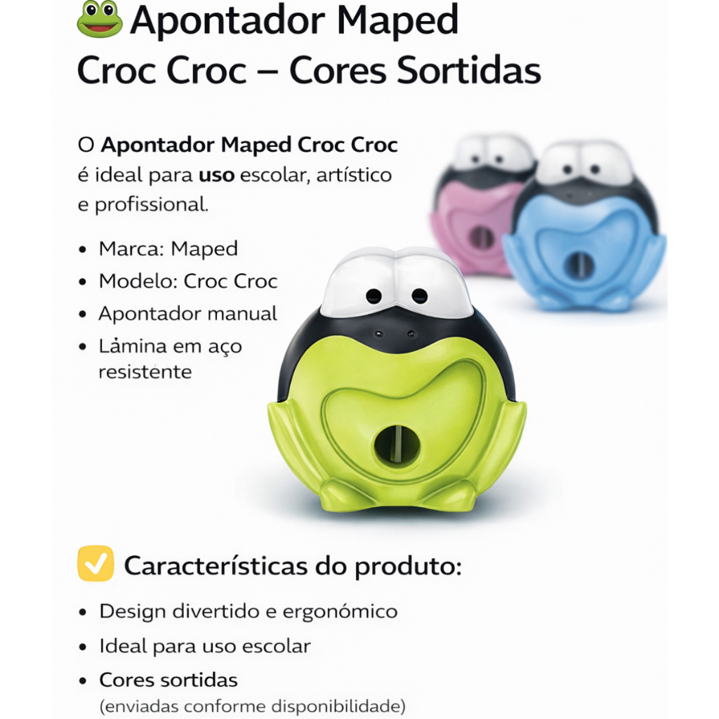Apontador Escolar Infantil CROC CROC SAPO 1 Furo Com Deposito MAPED