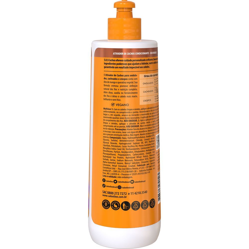 Ativador De Cachos Salon Line S.O.S Umidificador Óleo De Manga 500ml