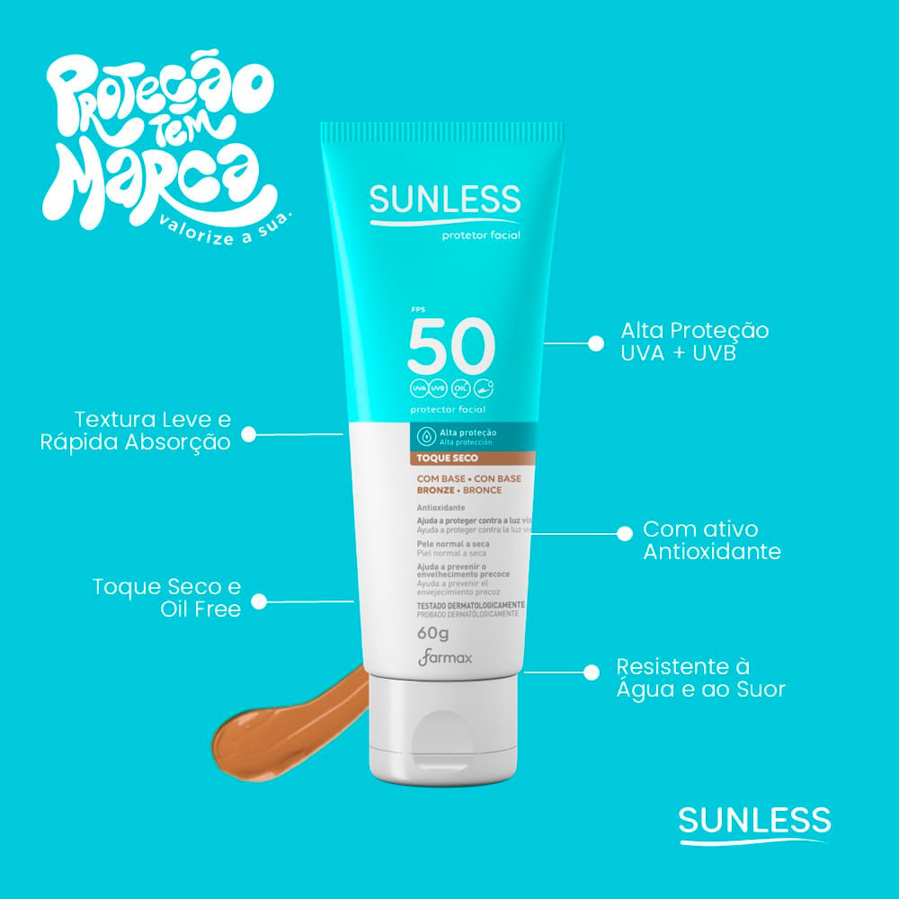Protetor Solar Facial Com Cor Sunless FPS 50 60g - Bronze