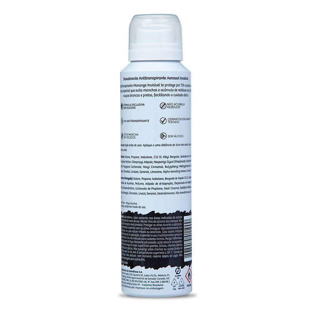 Kit Desodorante Aerosol Monange Invisível 90g - 12 Unidades