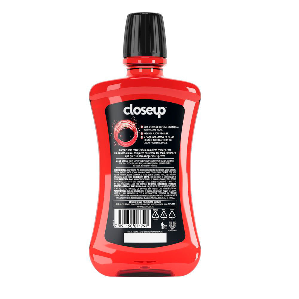 Antisséptico Bucal Close Up Red Hot Sem Álcool 500ml