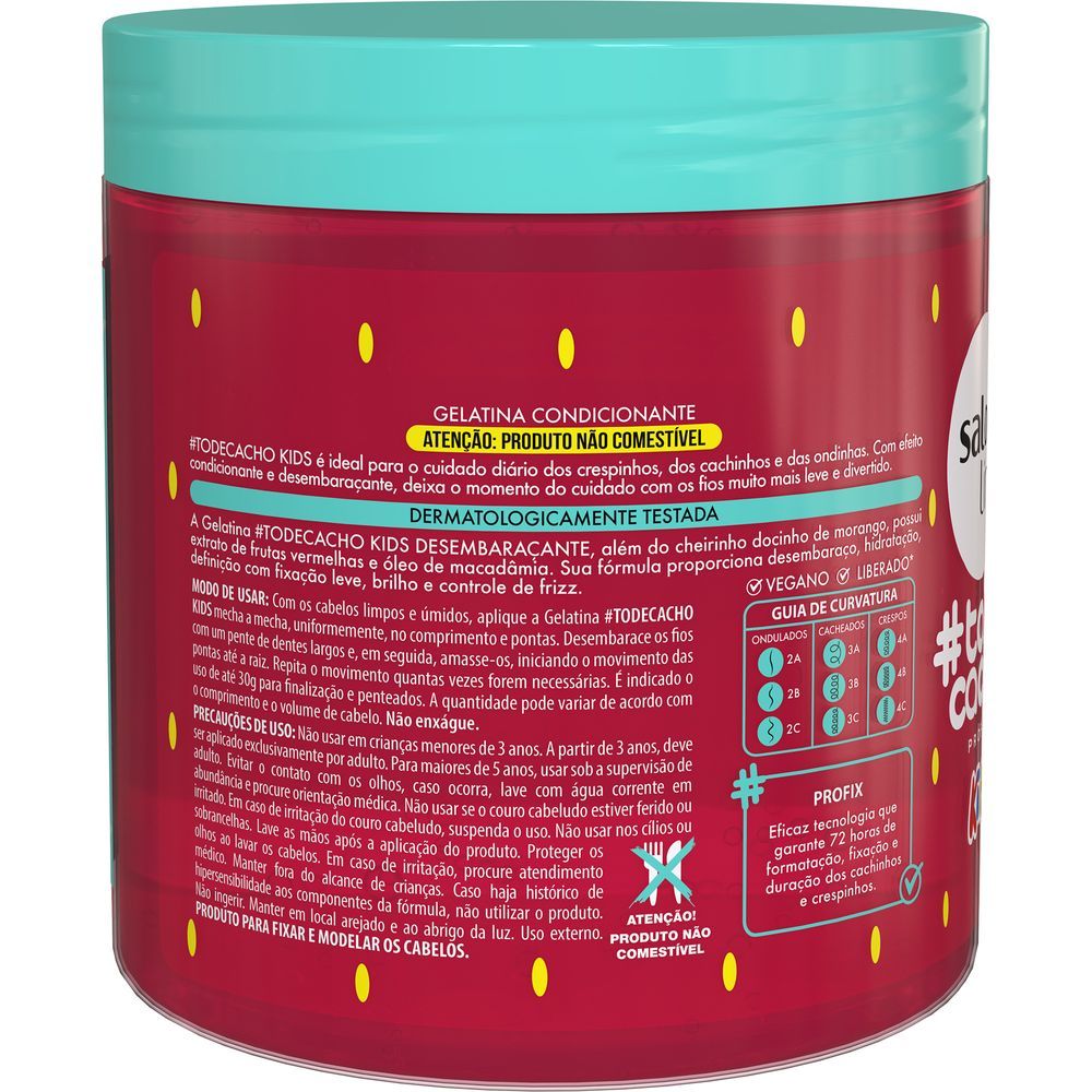 Gelatina Salon Line Morango #todecacho Kids Desembaraçante 550g