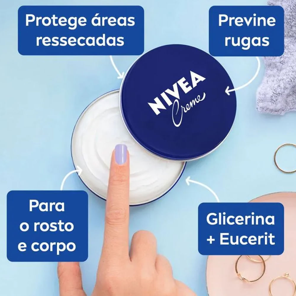 Kit Nivea Care Creme Hidratante Latinha Azul 29g + Hidratante Labial Amora Shine 4,8g