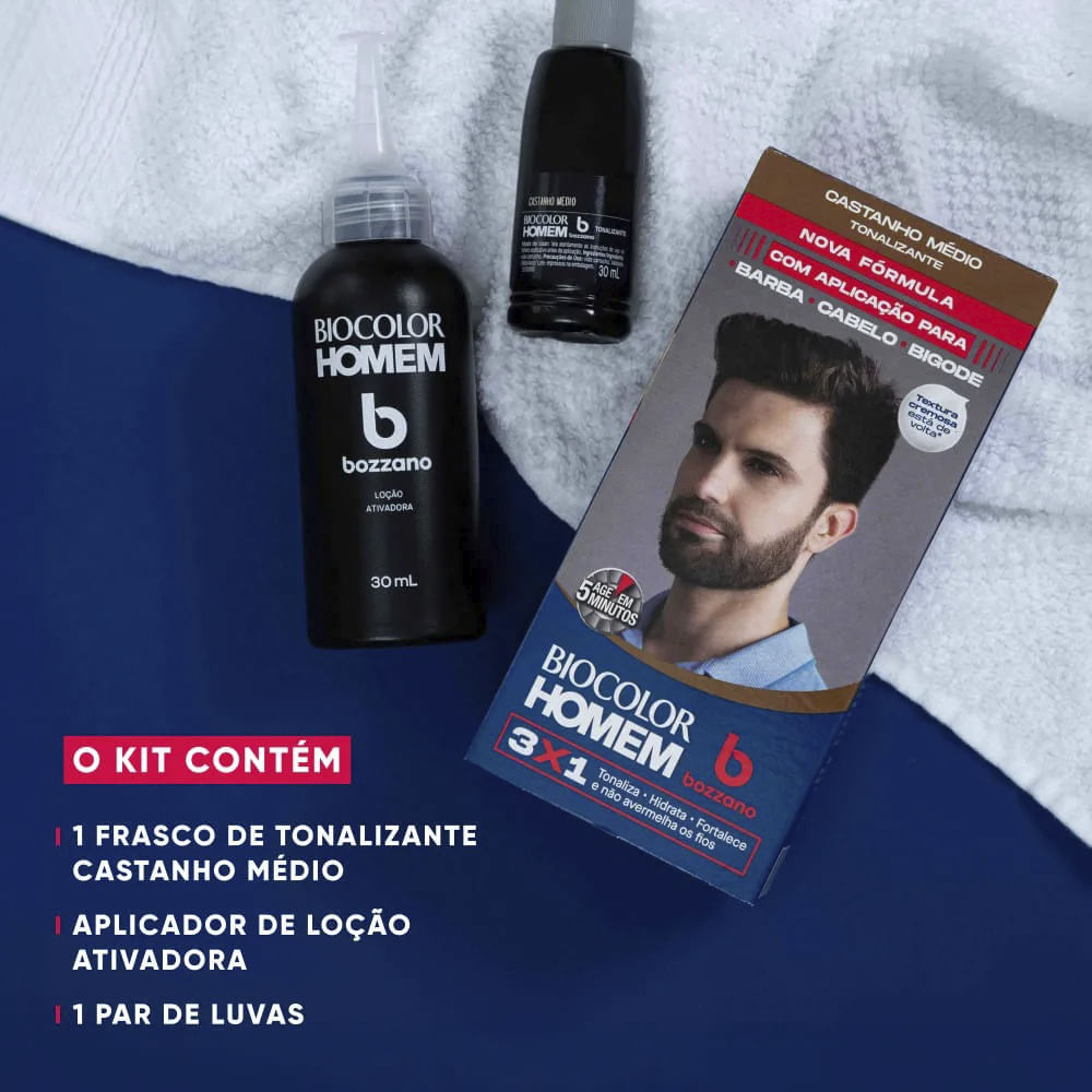 Kit Tonalizante Biocolor Homem Castanho Médio - 3 Unidades