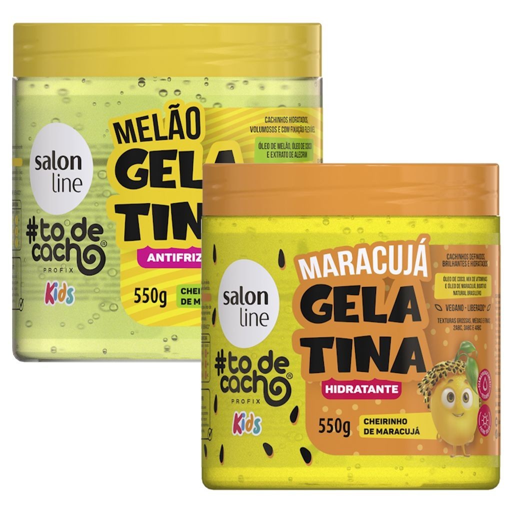 Kit Gelatina Salon Line Todecacho Kids Hidratante Maracujá 550g + Gelatina Salon Line Todecacho Antifrizz Melão 550g