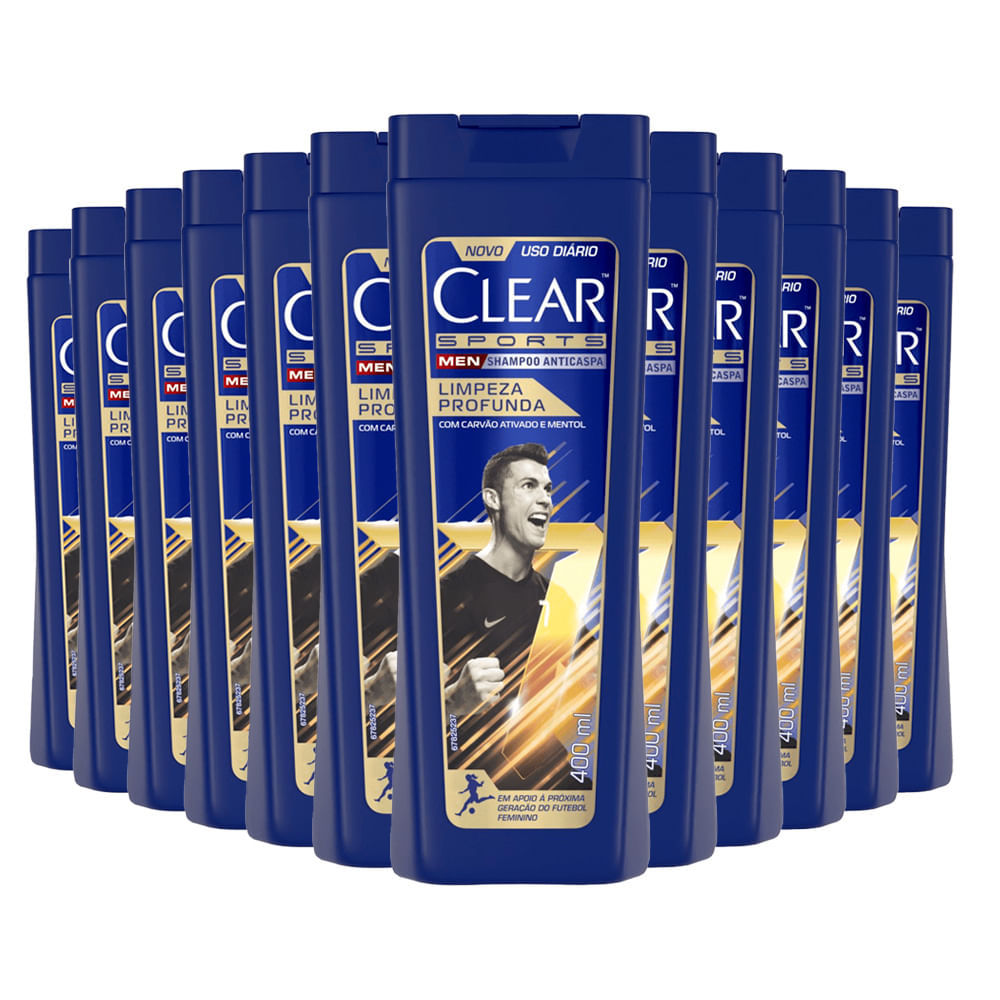 Kit Shampoo Anticaspa Clear Sports Men Limpeza Profunda 400ml 12 Unidades