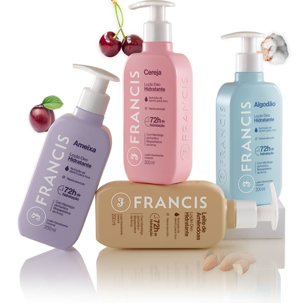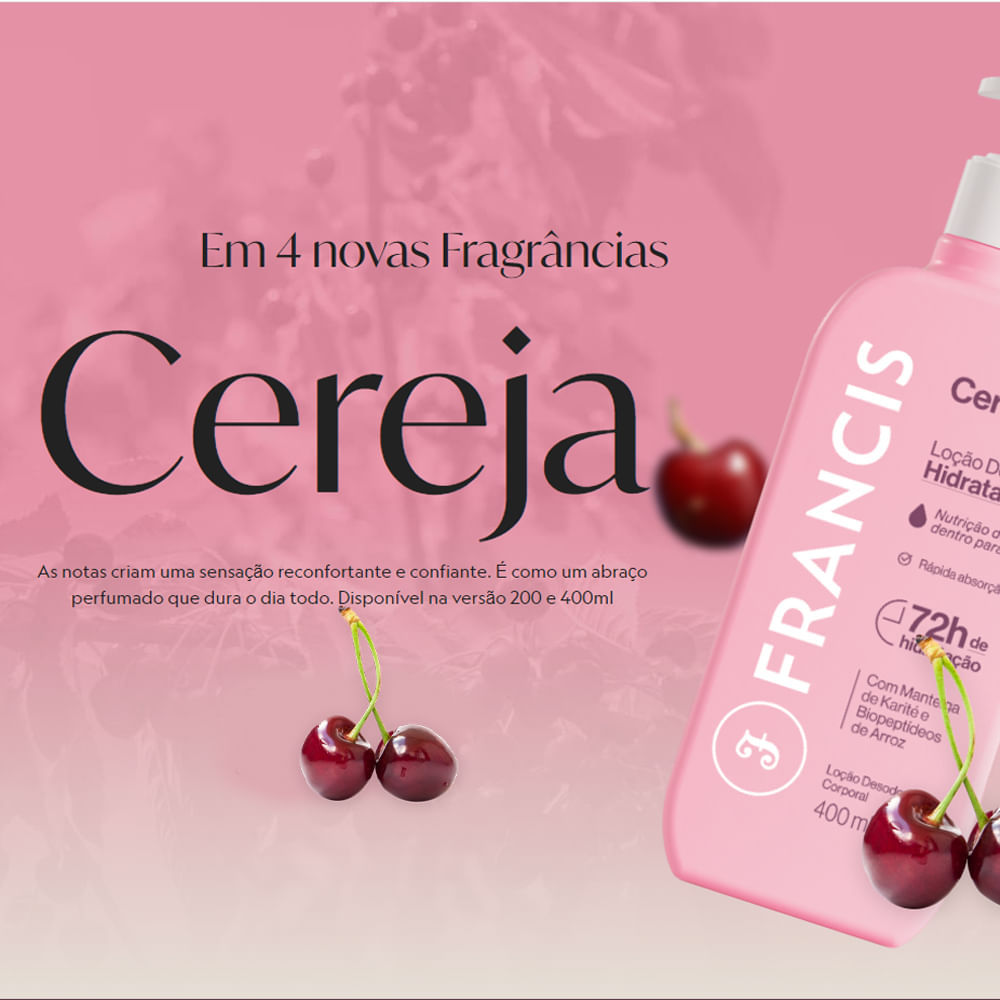 Kit Loção Hidratante Francis Cereja 400ml - 3 Unidades