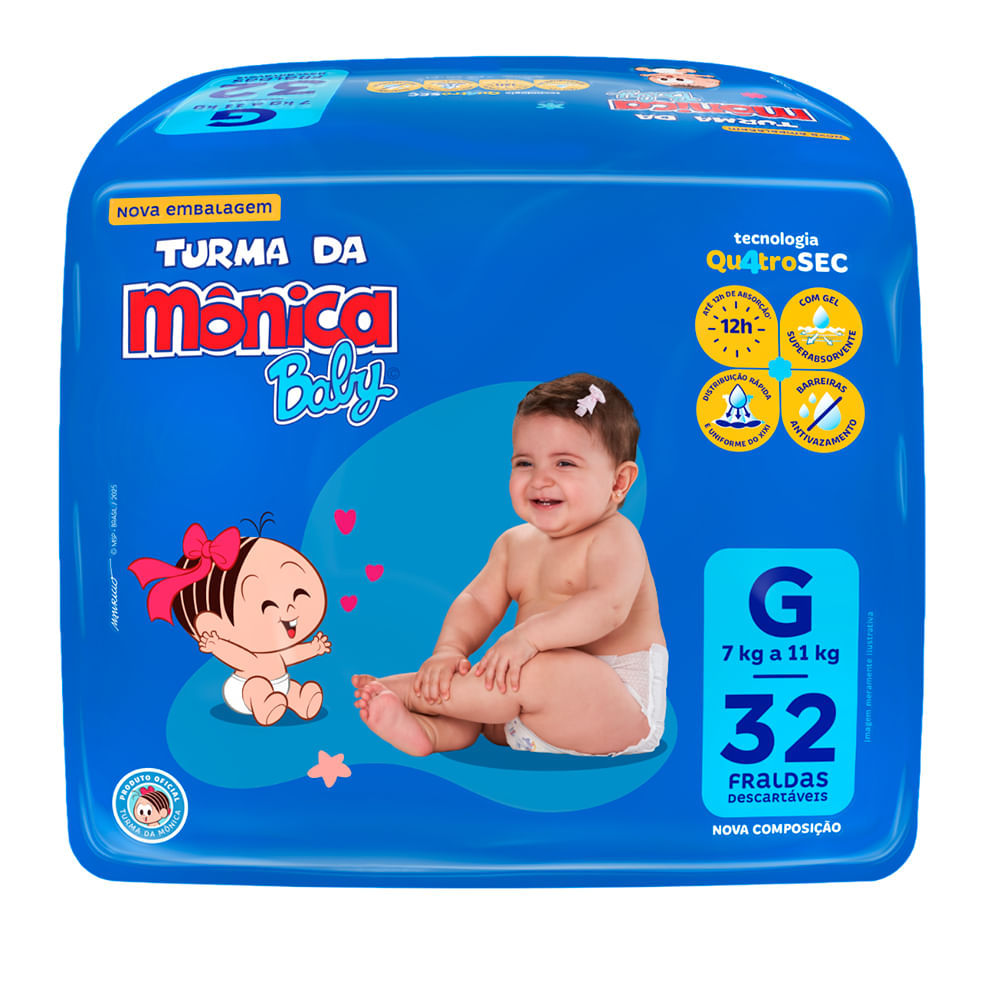 Fralda Descartável Turma Da Mônica Econômica G - 32 Unidades