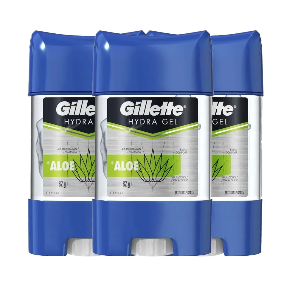 Kit Desodorante Gel Antitranspirante Gillette Hydra Gel Aloe 82g - 3 Unidades