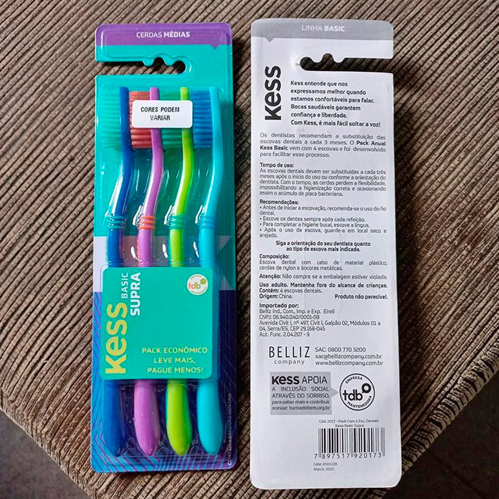 Combo Escova Dental Kess Supra Com 4 Unidades