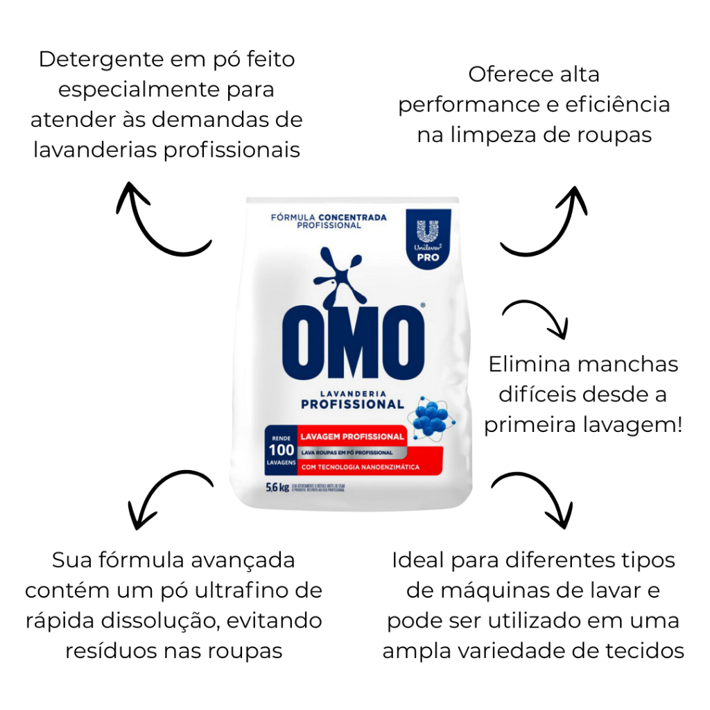 Omo em Pó Lavanderia Pro 5,6kg - Mais Cuidado e Economia