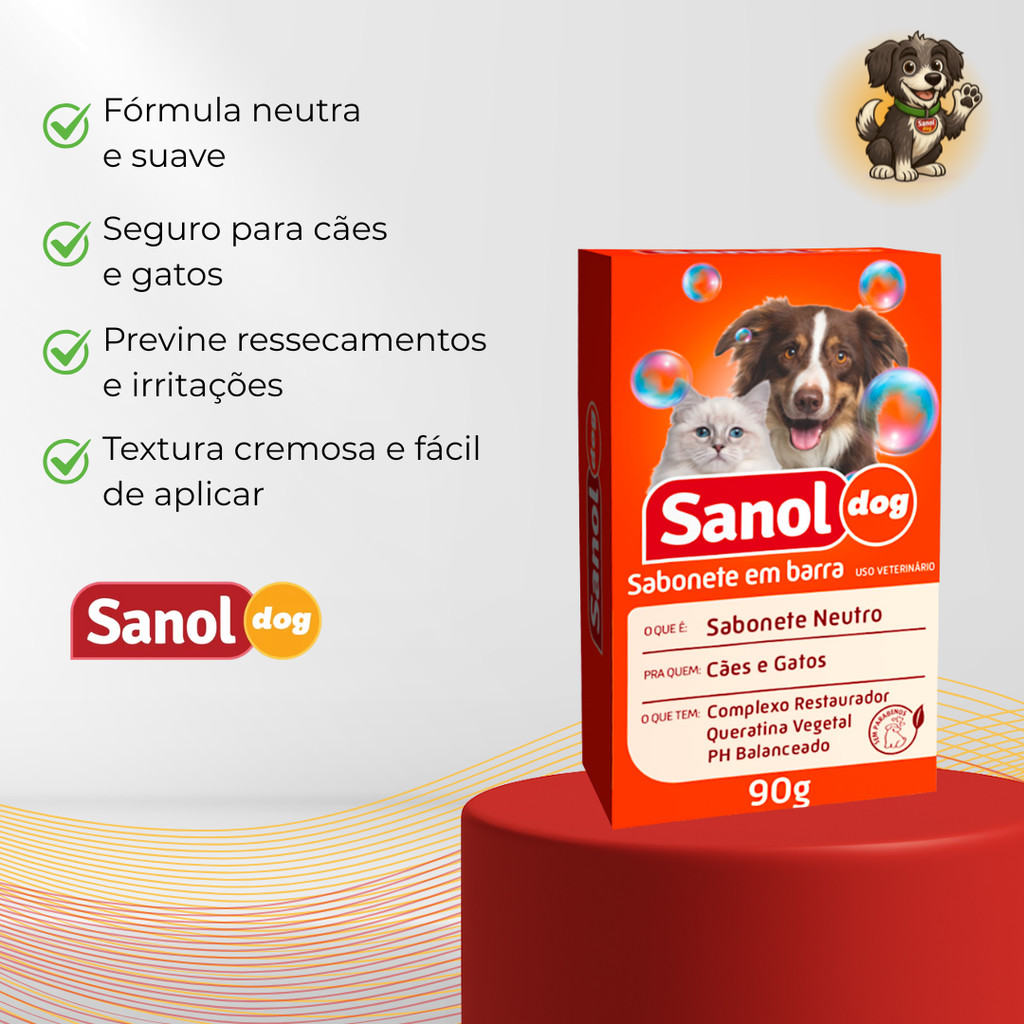 SABONETE EM BARRA NEUTRO 90G SANOL DOG