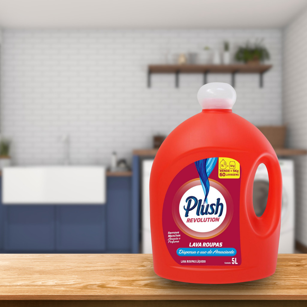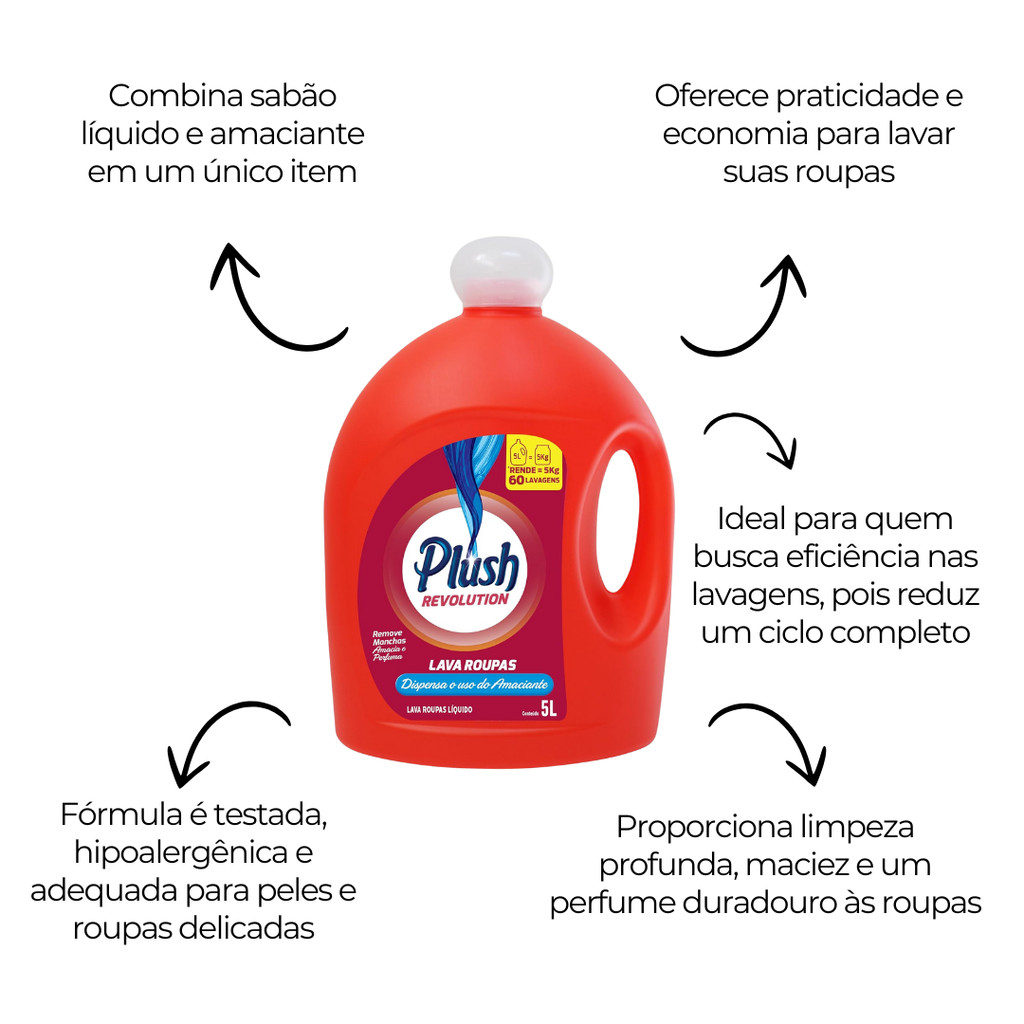 Lava Roupas e Amaciante 5L Dois em Um Plush Revolution - Inovação, Praticidade e Economia