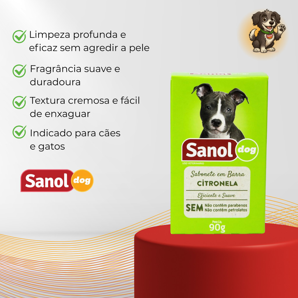 SABONETE EM BARRA CITRONELA 90G SANOL DOG