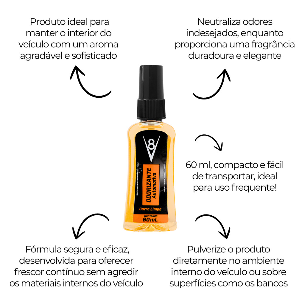 Odorizante Automotivo 60ML Carro Limpo V8 - Suave e Agradável