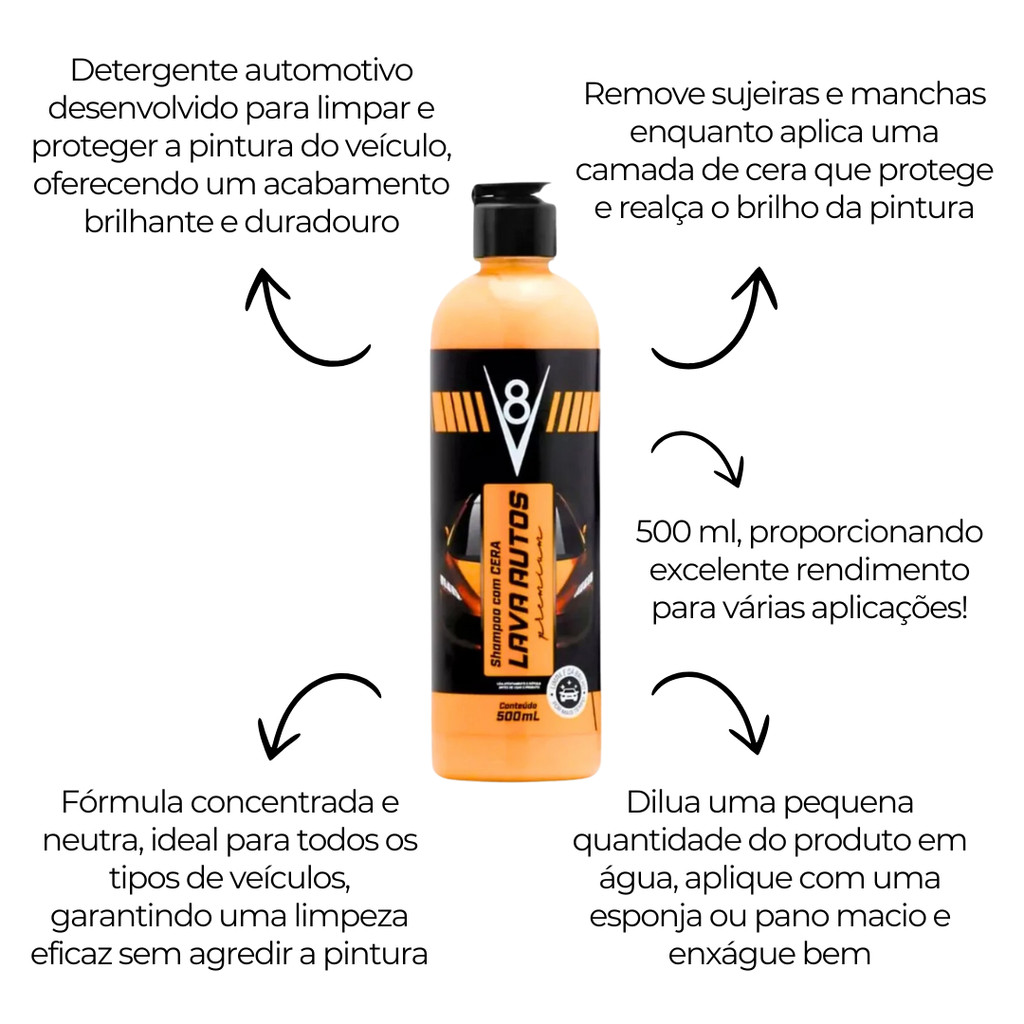 Lava Auto Com Cera 500ML V8 - Limpeza e Proteção