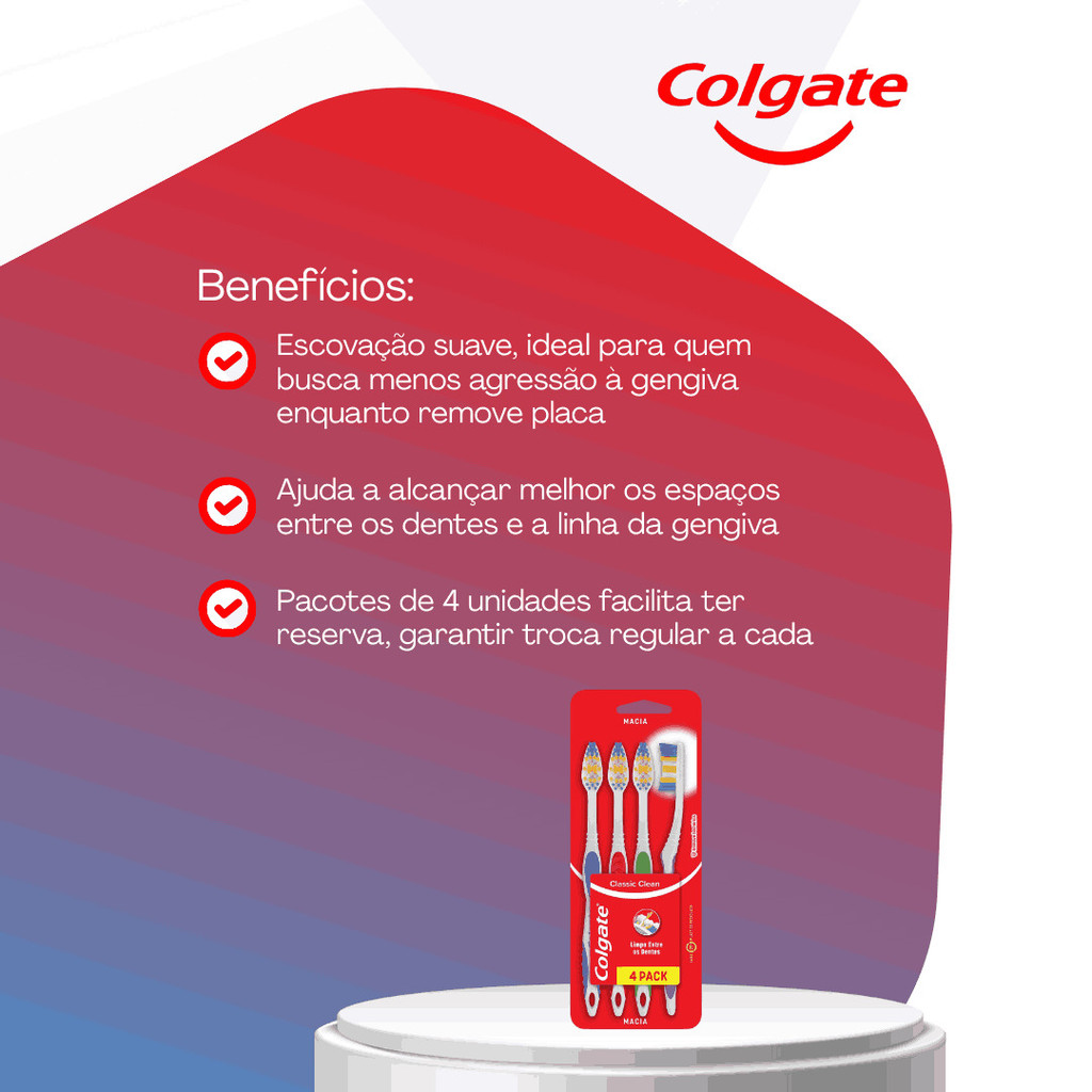 Escova Dente Colgate Classic Clean Macia 4un