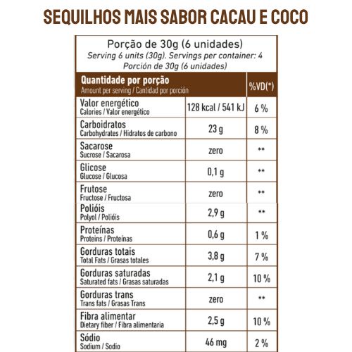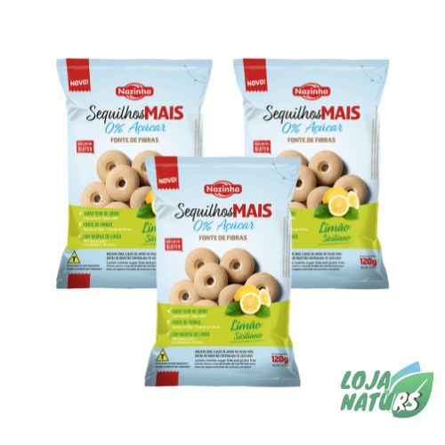KIT 3 Unidades Sequilhos Mais Sem Açúcar Sem Glúten Sem Lactose 120g - Nazinha