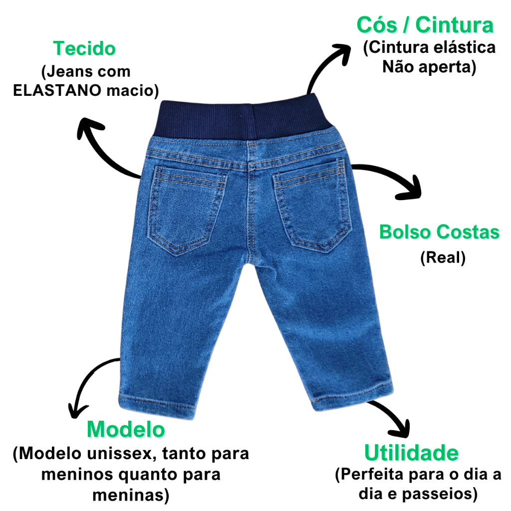 Calça Jeans Bebê Menino Menina P M G Cintura Elástica Confortável Infantil Pronta Entrega Versátil