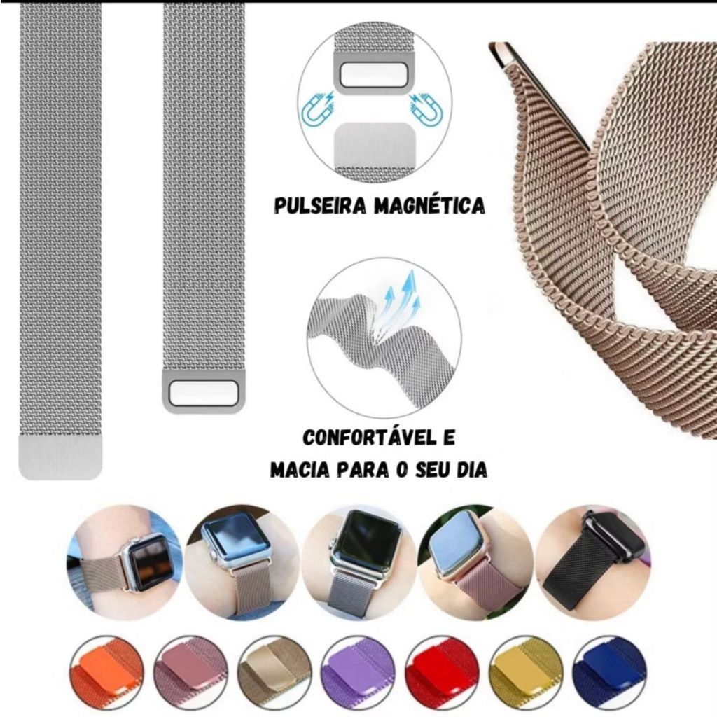 Pulseira Apple Watch Aço Milanese Metal Magnetico Fecho 38mm 40mm 41mm 42mm 44mm 45mm 49mm
