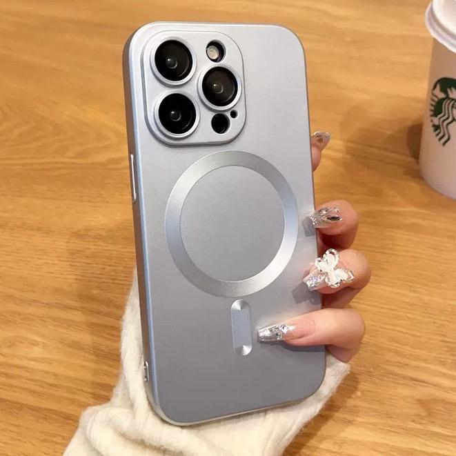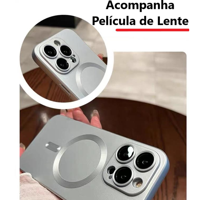 Case Capa Capinha Para iPhone 15 Plus Magsafe Magnético Metálico Fosco Silicone Com Lente De Proteção Metal