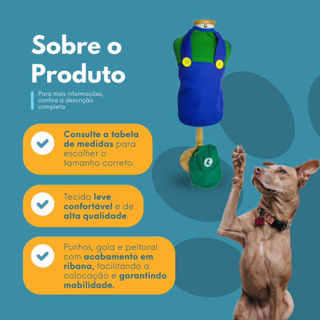 Roupa pet - Roupinha Pet Super Luiz Fantasia Personagem Chapeu Boné Cachorro Carnaval