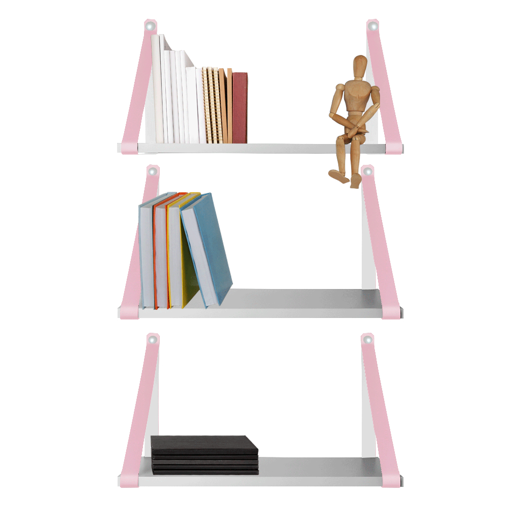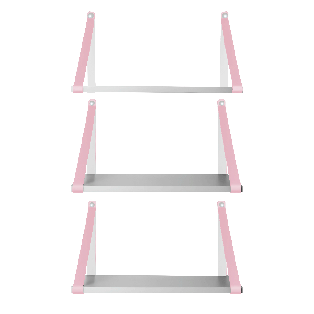 KIT 3 UNIDADES PRATELEIRAS BRANCA COM ALÇA COURO ECOLOGICO ROSA