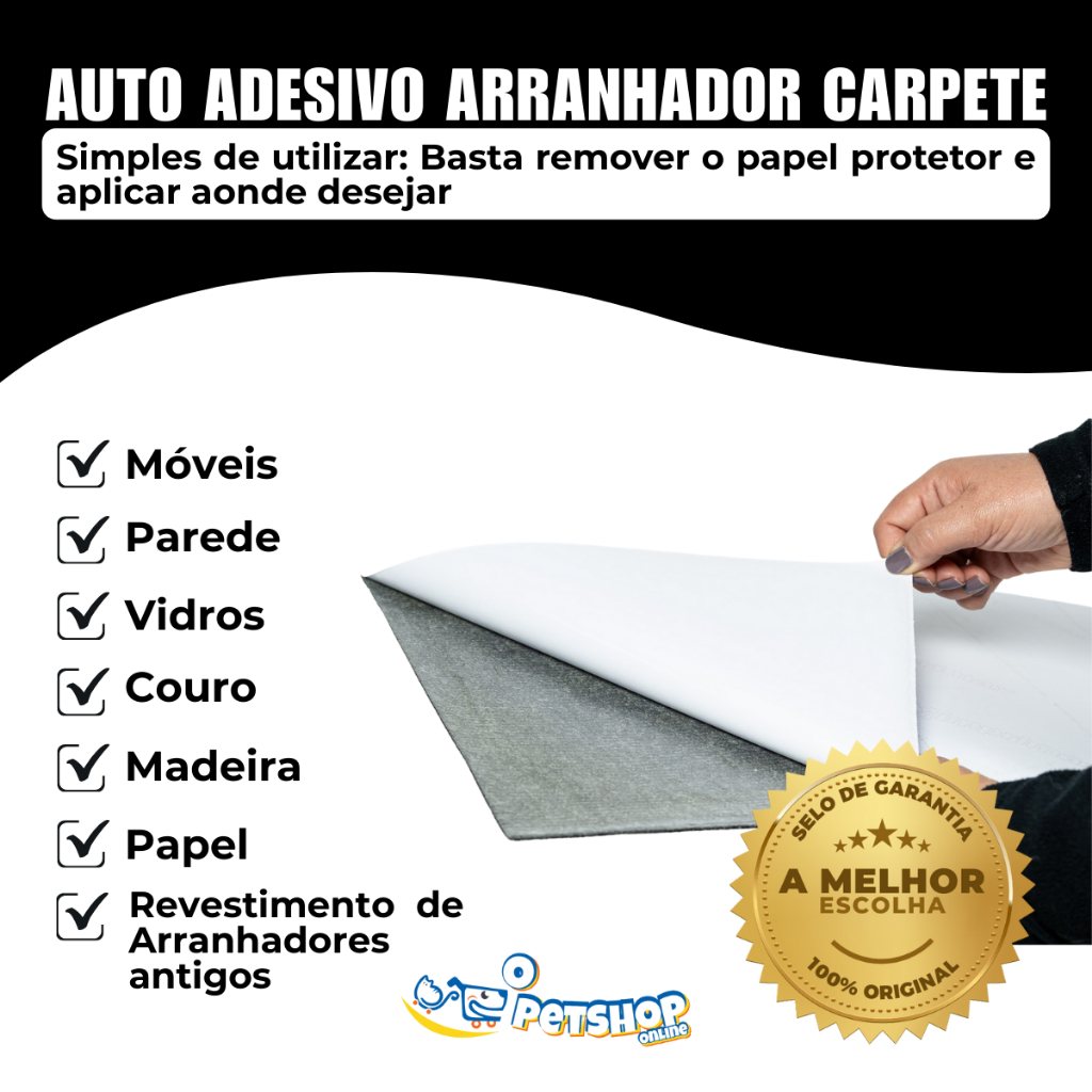 Arranhador Adesivo Design Gato em Carpete Premium - Protetor Móveis Parede e Escalada